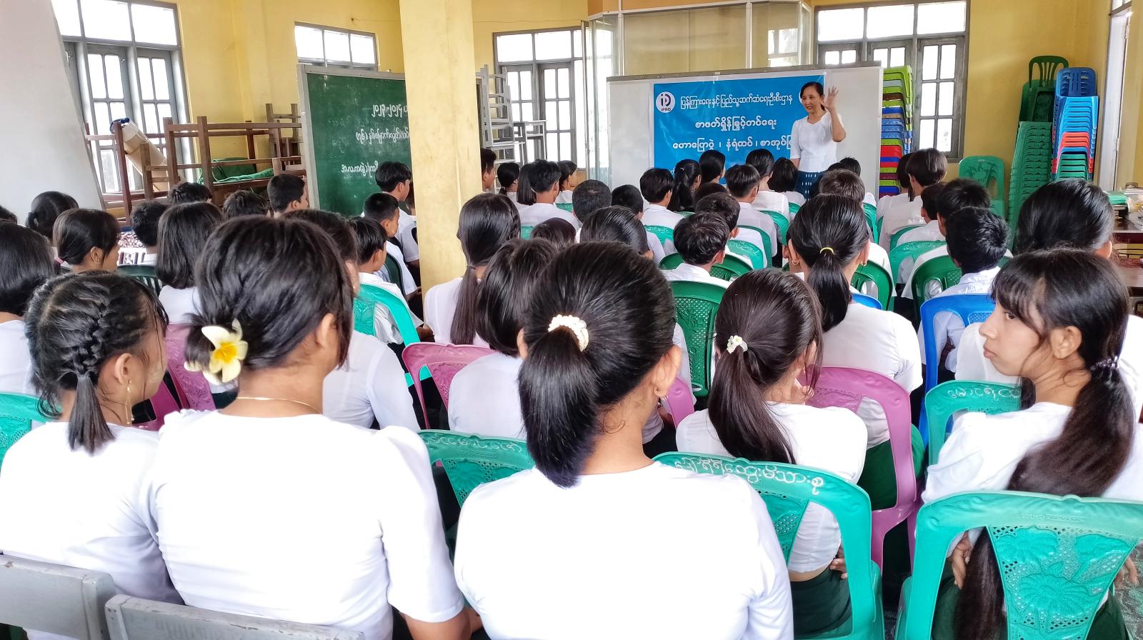 ဦးစွာ ကျောင်းအုပ်ဆရာမကြီး ဒေါ်ယဥ်ယဥ်လင်းက အဖွင့်အမှာစကားပြောကြားပြီး မုဒုံမြို့နယ် ပြန်ကြားရေးနှင့်ပြည်သူ့ဆက်ဆံရေးဦးစီးဌာနမှ ဦးစီးအရာရှိ ဒေါ်မိုးမိုးစန္ဒာထွန်းက မူးယစ်ဆေး၏ အန္တရာယ်နှင့် ဆိုးကျိုးများ၊ မူးယစ်ကင်းစင်ရေး ဆောင်ရန်/ ရှောင်ရန်အချက်များ၊ ကျောင်းသူ/သားများ ဗဟုသုတတိုးပွားနိုင်ရန် ကျောင်းစာအပြင် အခြားစာအုပ်စာစောင်များ လေ့လာဖတ်ရှုကြရေးတို့ကို ပြောကြားသည်။ ထို့နောက် ကျောင်းသား/သူများ စာဖတ်ရှိန်မြှင့်တင်နိုင်ရေးအတွက် စာဖတ်စွမ်းရည်ပြိုင်ပွဲကို ကျင်းပပေးခဲ့သည်။