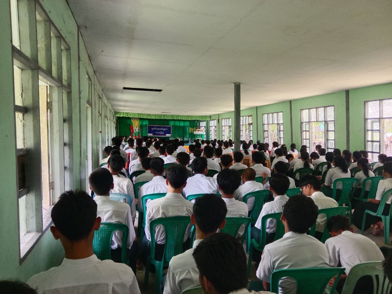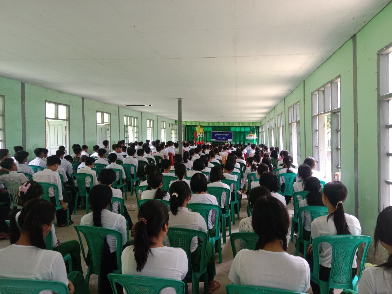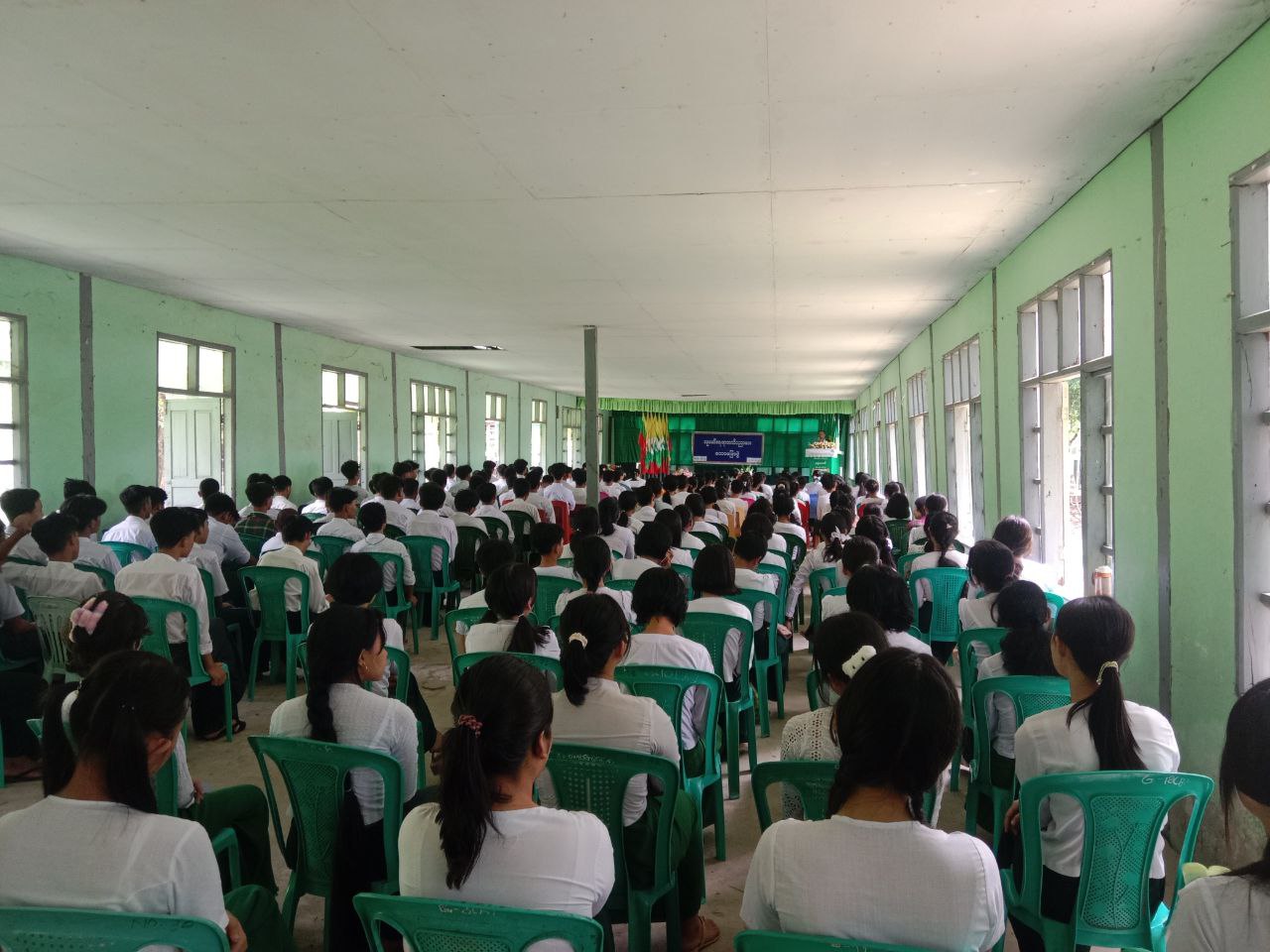 ရှေးဦးစွာ ခရိုင်စီမံအုပ်ချုပ်ရေးအဖွဲ့၊အဖွဲ့ဝင်(၂) ဒေါက်တာရွှေပြည်စိုးက အဖွင့်အမှာစကားပြောကြားရာတွင် လူငယ်များဗငါးတန်ပြည့်စုံဖို့လိုအပ်ကြောင်း၊ ဗလငါးတန်တွင်အရေးကြီးဆုံးသော စာရိတ္တမဏ္ဏိုင် ကြံ့ခိုင်ဖို့အရေးကြီးကြောင်း၊ နိုင်ငံတော်ကအားထားရတဲ့ ဘက်စုံထူးချွန်ထက်မြက်တဲ့ ကျောင်းသားများဖြစ်အောင် ကျိုးစားကြဖို့လို့ကြောင်း၊နိုင်ငံတော်ကလည်း အလေးထားအားပေးဆောင်ရွက်နေပါ ကြောင်း စသည်များ လမ်းညွှန်ဆွေးနွေးဟောပြောသည်။