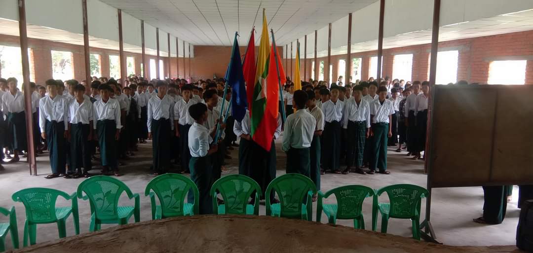 ဆက်လက်၍ ကျောင်းကောင်စီအမှုဆောင်အဖွဲ့ အမည်စာရင်းများအား ဖတ်ကြားကြေညာခြင်း၊ ကျောင်းကောင်စီအဖွဲ့မှကတိသစ္စာခံယူခြင်းနှင့် တစ်ကျောင်းလုံးရှိ ကျောင်းသား၊ ကျောင်းသူများကကတိသစ္စာခံယူခြင်း၊ တာဝန်အထိမ်းအမှတ်အလံများပေးအပ်ခြင်း၊ လက်ခံရ ယူခြင်းများဆောင်ရွက်ကြပြီး ဆရာ/ ဆရာမ (၂၅) ဦးနှင့် ကျောင်းသား/ ကျောင်းသူ (၃၀၀) ဦးတို့က နိုင်ငံတော်သီချင်းကို သံပြိုင်သီဆို၍ အခမ်းအနားကို ရုပ်သိမ်းခဲ့ကြောင်း သိရသည်။