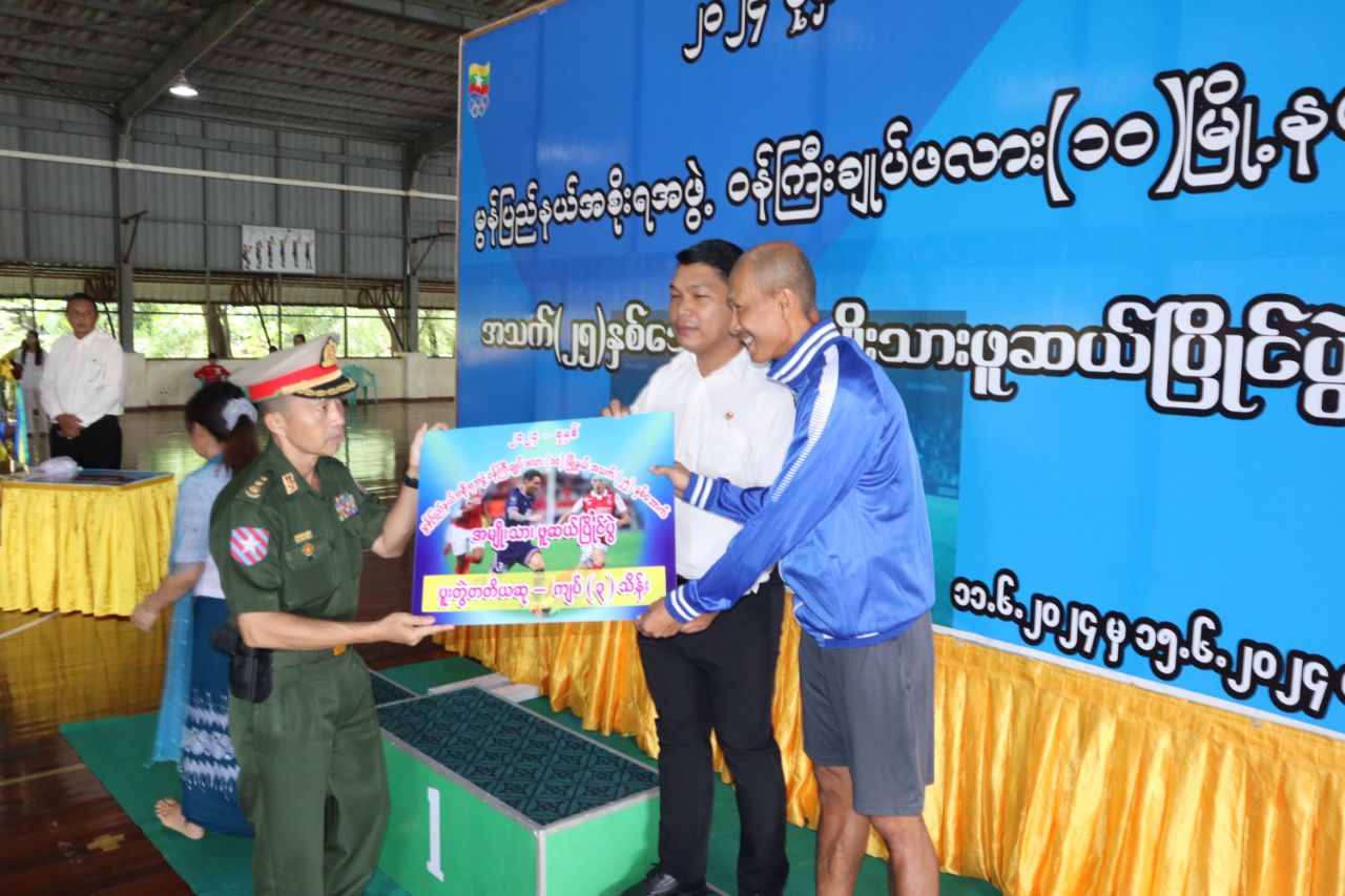 ယင်းနောက် ပြည်နယ်ဝန်ကြီးချုပ်က ၂၀၂၄ ခုနှစ် မွန်ပြည်နယ်အစိုးရအဖွဲ့ဝန်ကြီးချုပ်ဖလား(၁၀)မြို့နယ် အသက်(၂၅)နှစ်အောက် အမျိုး သား ဖူဆယ်ပြိုင်ပွဲတွင် ပထဆုရှိခဲ့သည့် မော်လမြိုင်မြို့နယ်၊ ဖူဆယ်ဘောလုံး အသင်းအား တစ်ဦးချင်းဆုတံဆိပ်များ၊ ငွေသားဆုများနှင့် တံခွန်စိုက် ဒိုင်းဆုအား ပေးအပ်ချီးမြှင့်ခဲ့ကြောင်း သိရသည်။