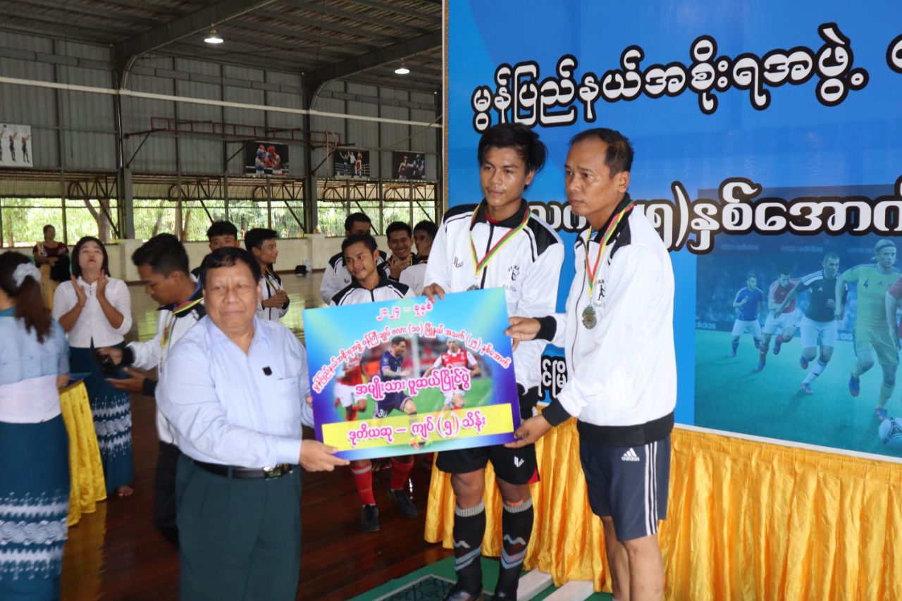 ထို့နောက် ဆုချီးမြှင့်ပွဲအခမ်းအနားကို ဆက်လက်ကျင်းပရာ ပြည်နယ်ဝန်ကြီးများက ပွဲစဉ်အလိုက် အကောင်းဆုံး ကစားသမားဆုများ၊ နေရာအလိုက် အကောင်းဆုံး ကစားသမားဆုများနှင့် ပူးတွဲတတိယဆုများ ရရှိကြသည့် အမျိုးသားဖူဆယ်ပြိုင်ပွဲဝင် အသင်းများအား လည်းကောင်း၊ ပြည်နယ်တရားလွှတ်တော်တရားသူကြီးချုပ်မှ ဒုတိယဆု၊ ရရှိကြသည့်ပြိုင်ပွဲဝင် ကျိုက်ထိုမြို့နယ် ဖူဆယ်ဘောလုံးအသင်းအားလည်းကောင်း တစ်ဦးချင်းဆုတံဆိပ်နှင့် ငွေသားဆုများ အသီးသီးပေးအပ် ချီးမြှင့်ခဲ့ကြသည်။