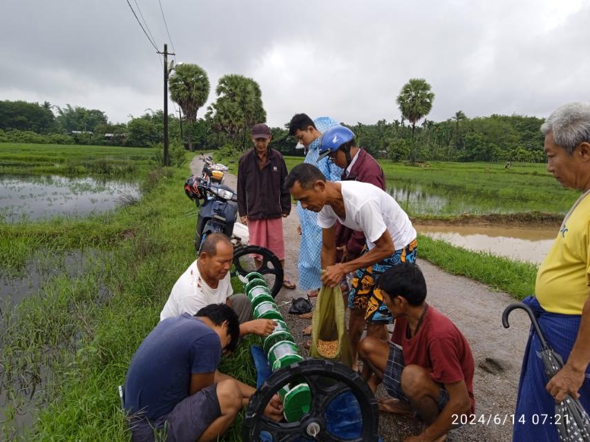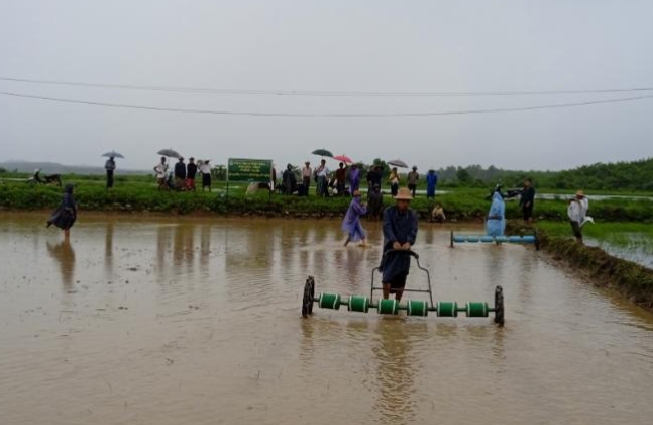 မွန်ပြည်နယ်၊ သံဖြူဇရပ်မြို့နယ်တွင် စပါးမျိုးစေ့ချကိရိယာ(Seeder) ဖြင့် စိုက်နည်းစနစ် မှန်ကန်ရေး လက်တွေ့အစေ့ချ စိုက်ပျိုးပြသခြင်းကို ယမန်နေ့ နံနက်က ကျုံကဒတ်ကျေးရွာ တောင်သူတစ်ဦး၏ လယ်ယာမြေ၌ တာဝန်ရှိသူများ ပူးပေါင်းပြုလုပ်ခဲ့ကြသည်။
