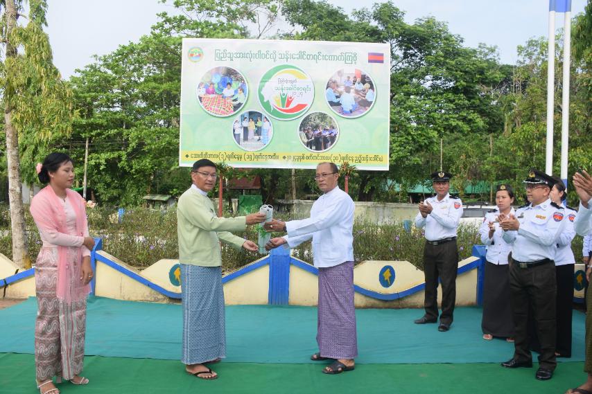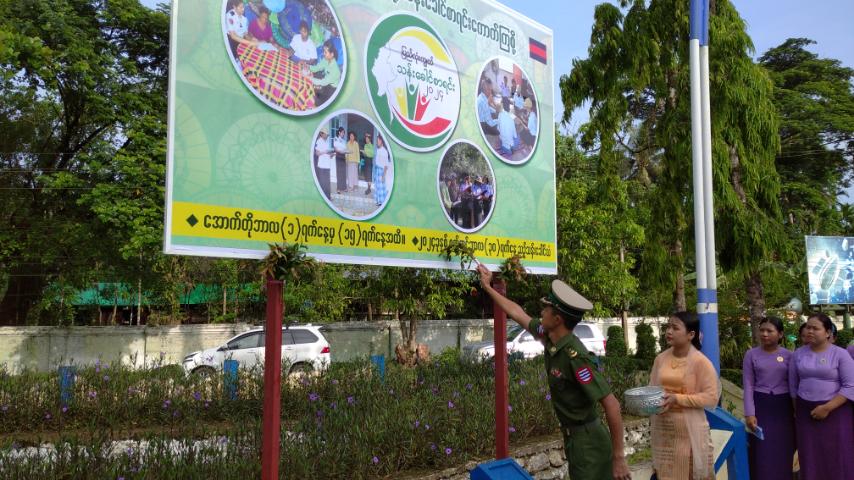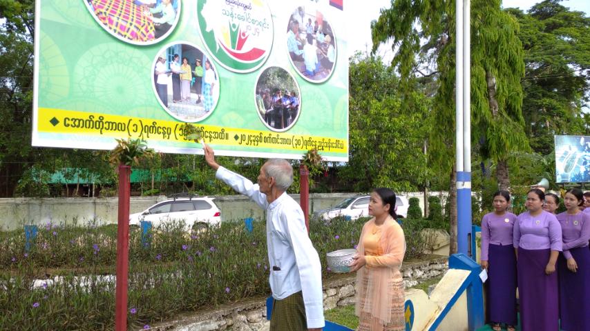 ရှေးဦးစွာ သန်းခေါင်စာရင်းကောက်ယူရေး လူထုအသိပညာပေးဆိုင်းဘုတ်အား ခရိုင်စီမံအုပ်ချုပ်ရေးအဖွဲ့ဥက္ကဋ္ဌ၊ ခရိုင်သန်းခေါင်စာရင်းကော်မတီဥက္ကဋ္ဌ ဦးစန်းဌေး၊ခရိုင်စီမံအုပ်ချုပ်ရေးအဖွဲ့ဝင် (၁) ဒုတိယ ဗိုလ်မှူးကြီးထက်အောင်နှင့် ခရိုင်စီမံအုပ်ချုပ်ရေးအဖွဲ့အတွင်းရေးမှူး၊ ခရိုင်ရဲတပ်ဖွဲ့မှူးရဲမှူးကြီးသောင်းထိုက်တို့က ဖဲကြိုးဖြတ်ဖွင့်လှစ်ပေးခဲ့ကြသည်။ ဆက်လက်၍ ခရိုင်စီမံအုပ်ချုပ်ရေးအဖွဲ့ဥက္ကဋ္ဌနှင့် တာဝန်ရှိသူများက လူထုအသိပညာပေးဆိုင်းဘုတ်အား အမွှေးနံသာရည်များ ပက်ဖျန်းပေးခဲ့ကြသည်။ ထို့နောက် ခရိုင်ဥက္ကဋ္ဌ ဦးစန်းဌေး၊ ခရိုင်လူဝင်မှုကြီးကြပ်ရေးနှင့်ပြည်သူ့အင်အားဝန်ကြီးဌာနမှ ခရိုင်ဦးစီးမှူးဦးခင်မောင်မြင့်၊ မြို့နယ်ဥက္ကဋ္ဌဦးနော်မိုင်လှကြည်နှင့် တာဝန်ရှိသူများကသန်းခေါင်စာရင်းကောက်ယူခြင်း လှုံ့ဆော်ရေး နံရံကပ်ပိုစတာများအား ရပ်ကွက်အုပ်ချုပ်ရေးမှူးများထံသို့ ပေးအပ်ခဲ့ကြောင်း သိရသည်။