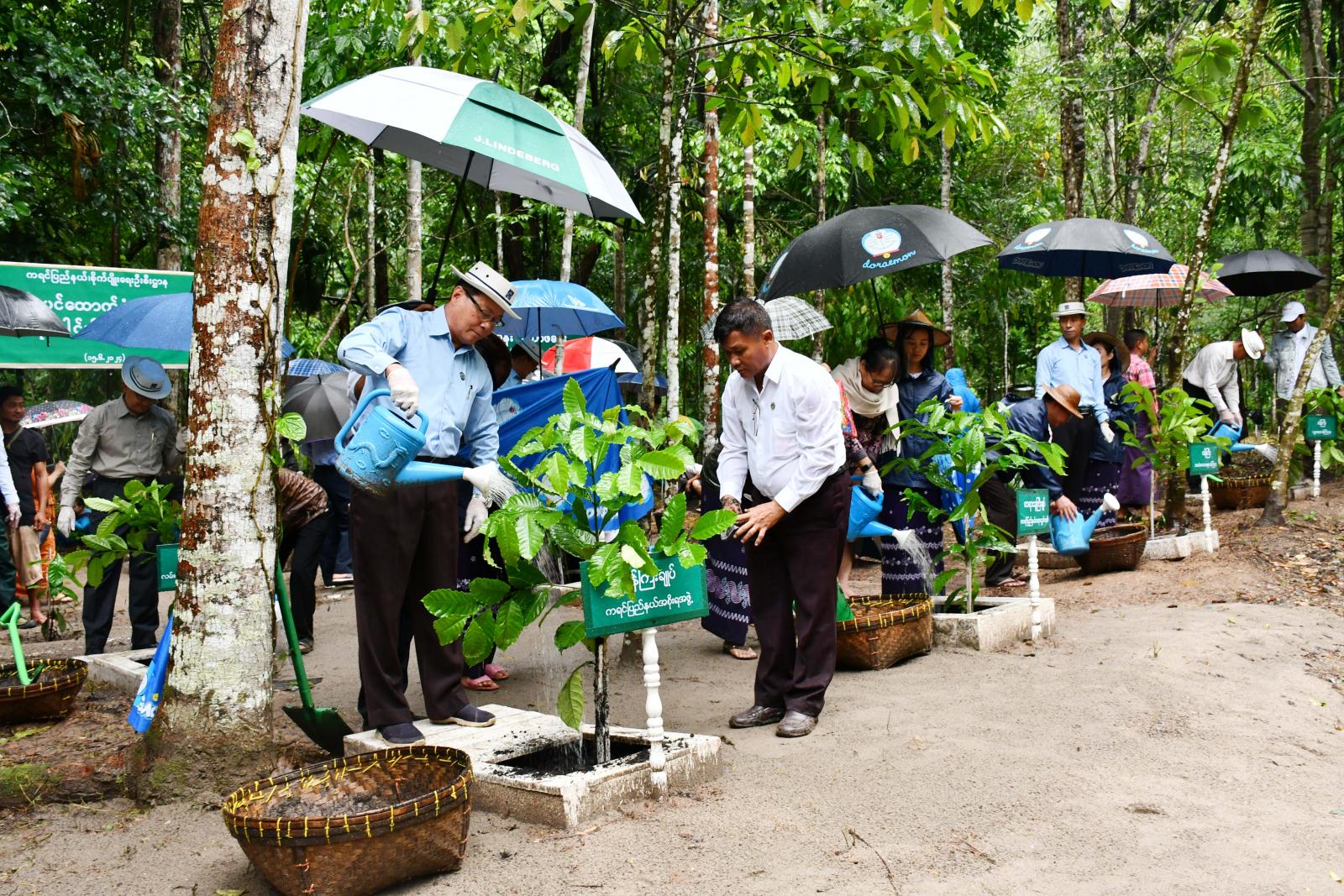 ထို့နောက် ပြည်နယ်ဝန်ကြီးချုပ်၊ ပြည်နယ်တရားလွှတ်တော်တရားသူကြီးချုပ်၊ ပြည်နယ်အစိုးရအဖွဲ့ဝင်များက ဗျိုင်းတောင်၊ လှာကဒေါင်၊ အုန်းတပင်၊ အိန္ဒဲ၊ အိန္ဒု၊ ကော့သင်းရှူး၊ လက္ခဏ၊ ခလောက်ထောင်၊ သစ်ချ၊ လွန်းည ကျေးရွာများမှ ကော်ဖီသီးနှံစိုက်ပျိုးမည့်တောင်သူများအား ဧက(၁၀၀)အတွက် ကော်ဖီပျိုးပင် ၄၃၅၀၀ ပင်အားဖြန့်ဝေ ပေးခဲ့ပြီး ဗျိုင်းတောင်ကျေးရွာ တောင်သူဦးအလု၏ စိုက်ဧက ၃ ဒဿမ ၅ ဧကအတွင်း ကော်ဖီပျိုးပင် ၁၅၂၂ ပင်ကို တက်ရောက်လာသူများနှင့်အတူ စုပေါင်းစိုက်ပျိုးခဲ့ကြသည်။