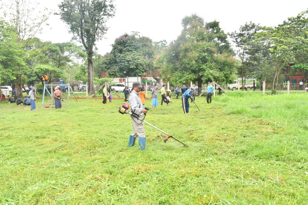 ယခုအချိန်အခါတွင် နိုင်ငံတော်စီမံအုပ်ချုပ်ရေးကောင်စီ၏ဦးဆောင်မှုနှင့်အတူ နိုင်ငံတစ်ဝန်းလုံး၌ တပ်မတော်သားများ၊ ဌာနဆိုင်ရာအဖွဲ့အစည်းများ၊ ဒေသခံပြည်သူအားလုံးက နိုင်ငံတော်ဖွံ့ဖြိုးတိုးတက်ရေးလုပ်ငန်းများကို ညီညီညွတ်ညွတ်ဖြင့် ဆောင်ရွက်လျက်ရှိကြသည့်အပြင် မိမိတို့ မြို့ရွာသန့်ရှင်းသာယာလှပရေးအတွက် အပတ်စဉ်စနေနေ့တိုင်းတွင် ဘုန်းတော်ကြီးကျောင်းများ၊ စာသင်ကျောင်းများ၊ ဆေးရုံ၊ ဆေးခန်းများ၌ ခြင်၊ ယင်၊ ပေါက်ပွားမှုမရှိစေရေးနှင့် ဆေးရုံတက်ရောက်ကုသနေသော လူနာများအား လေကောင်းလေသန့်ရရှိစေရန် ချုံနွယ်၊ ပေါင်းမြက်များ ခုတ်ထွင်ရှင်းလင်းခြင်းများကို စုပေါင်းဆောင်ရွက်လျက်ရှိသည်။