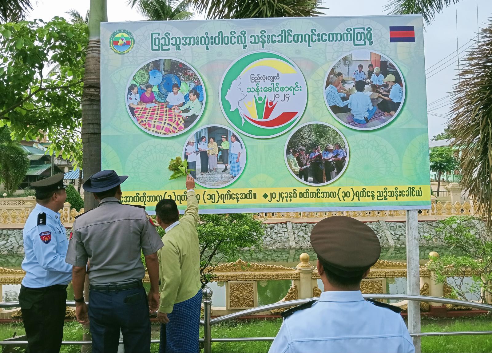 အဆိုပါ ၂၀၂၄ ခုနှစ် လူဦးရေနှင့်အိမ်အကြောင်းအရာသန်းခေါင်စာရင်းကောက်ယူနိုင်ရေးအတွက် လူထုအသိပညာပေး Bill Board စိုက်ထူခြင်းကို မြို့နယ်စီမံအုပ်ချုပ်ရေးအဖွဲ့ဥက္ကဋ္ဌ ဦးထွန်းထွန်းလင်း၊ မြို့နယ်ရဲတပ်ဖွဲ့မှူး ရဲမှူးဇော်ဝမ်း၊ မြို့နယ်လူဝင်မှုကြီးကြပ်ရေးနှင့် ပြည်သူ့အင်အားဆိုင်ရာဦးစီးဌာန ဦးစီးအရာရှိ ဦးဖုန်းနိုင်တို့က ဖဲကြိုးဖြတ်ဖွင့်လှစ်၍ အမွေးနံ့သာ ပက်ဖြန်းခဲ့ကြသည်။ အခမ်းအနားသို့ မြို့နယ်စီမံအုပ်ချုပ်ရေးအဖွဲ့ဥက္ကဋ္ဌ ဦးထွန်းထွန်းလင်းနှင့် အဖွဲ့ဝင်များ၊ မြို့နယ်လူဝင်မှုကြီးကြပ်ရေးနှင့်ပြည်သူ့အင်အားဆိုင်ရာဦးစီးဌာန ဦးစီးအရာရှိ ဦးဖုန်းနိုင်နှင့်ဝန်ထမ်းများ၊ ဌာနဆိုင်ရာအကြီးအကဲများ တက်ရောက်ခဲ့ကြပြီး ပြည်သူအားလုံးပါဝင်လို့ သန်းခေါင်စာရင်းကောက်ကြစို့ အသိပညာပေး လက်ကမ်းစာစောင်များ ဖြန့်ဝေပေးခဲ့ကြသည်။
