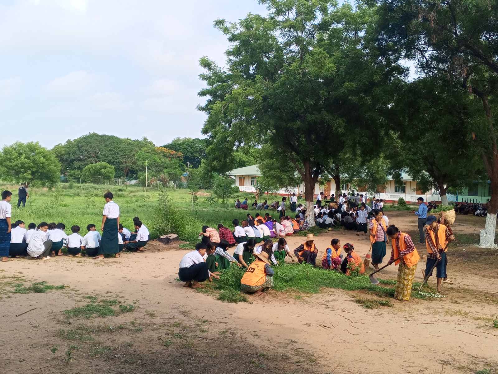 ၂၀၂၄-၂၀၂၅ ပညာသင်နှစ်တွင် ကျောင်းသား၊ ကျောင်းသူလေးများ စိတ်အေးချမ်းသာစွာ ပညာသင်ကြားနိုင်ရေးနှင့် ကျောင်းဥပဓိရုပ်ကောင်းမွန်စေရေးနှင့် ကျောင်းတွင်း ကျောင်းပြင် သန့်ရှင်းသာယာစေရေးတို့အတွက် ယနေ့နံနက်ပိုင်းက မုံရွာမြို့၊ မြို့သစ်ရပ်ကွက်ရှိ အခြေခံပညာအလယ်တန်းကျောင်း(ခွဲ)ကျောင်းဝန်းကျင်နှင့် ကျောင်းအတွင်းရှိ သစ်ပင်ခြုံနွယ်များ၊ ပေါင်းမြက်များခုတ်ထွင်ရှင်းလင်းခြင်း၊ ခြင်များမပေါက်ပွားနိုင်အောင် ရေနုတ်မြောင်းများရေစီးရေလာ ကောင်းမွန်စေရေးတို့အတွက် တိုင်းဒေသကြီး/ခရိုင်/မြို့နယ် အဆင့်ဌာနဆိုင်ရာများမှ ဝန်ထမ်းများ၊ မြန်မာနိုင်ငံရဲတပ်ဖွဲ့ဝင်များ၊ မီးသတ်တပ်ဖွဲ့ဝင်များ၊ စည်ပင်သာယာရေးအဖွဲ့များ၊ လူမှုရေးအသင်းအဖွဲ့ဝင်များ၊ ဆရာ/ဆရာမများနှင့် ကျောင်းသား ကျောင်းသူများ ကျောင်းသားမိဘများစုပေါင်း၍ သန့်ရှင်းရေးလုပ်ငန်းများ ဆောင်ရွက်ခဲ့ကြသည်။