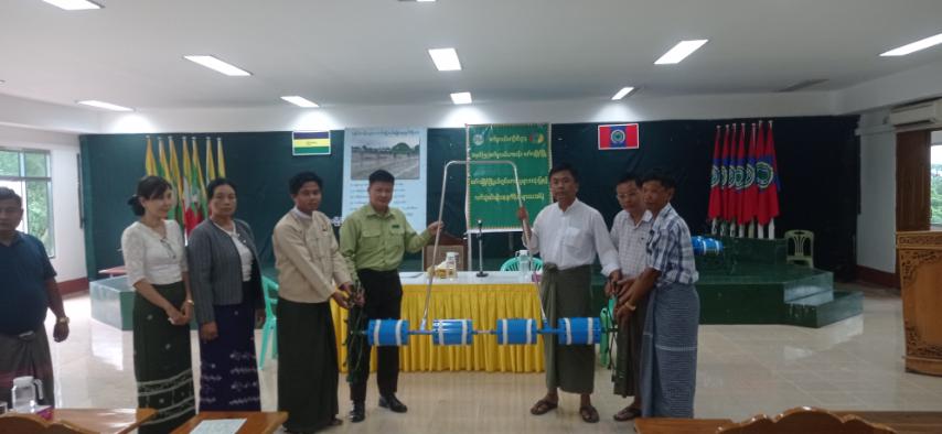 ဆက်လက်၍ မြို့နယ်စက်မှုလယ်ယာဦးစီးဌာန မြို့နယ်ဦးစီးမှူး ဦးအောင်ကျော်ဇင်က မျိုးစေ့ချကိရိယာများအား ဖြန့်ဖြူးရခြင်း ရည်ရွယ်ချက်ကိုပြောကြားပြီး ကျေးရွာအုပ်စုများရှိ စပါးစိုက် တောင်သူများအား မြို့နယ်စီမံအုပ်ချုပ်ရေးအဖွဲ့ဥက္ကဋ္ဌ ဦးတင်ယုနှင့်အဖွဲ့ဝင်များ တာဝန်ရှိသူများက စပါးမျိုးစေ့ချ ကိရိယာများကို လက်ဝယ်အရောက်ပေးအပ်ခဲ့ကြသည်။
