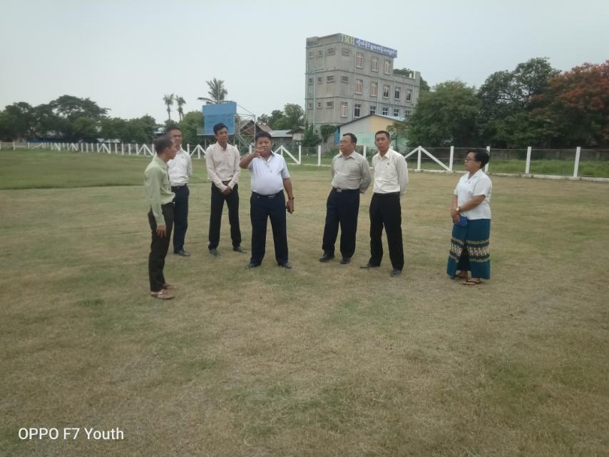 အဆိုပါ အားကစားကွင်းတွင် အားကစားနှင့်လူငယ်ရေးရာဝန်ကြီးဌာန ဒုတိယဝန်ကြီး ဦးထိန်းလင်းက ခေတ်မီဘောလုံးကစားကွင်း ဖြစ်ပေါ်လာစေရေး၊ ကွင်းပတ်ရေနှုတ်မြောင်းများအား ပြုပြင်နိုင်ရန် ပြင်ဆင်ထိန်းသိမ်းရေး ရန်ပုံငွေတင်ပြတောင်းခံပြီး ပြုပြင်ဆောင်ရွက်သွားရန်နှင့် အားကစားကွင်း အုတ်တံတိုင်းများအား ပြုပြင်ဆောင်ရွက်သွားရန် လမ်းညွှန်မှာကြားခဲ့သည်။ ဆက်လက်၍ မြို့နယ်အားကစားနှင့် ကာယပညာဦးစီးဌာနမှ ဝန်ထမ်းများနှင့် တွေ့ဆုံပြီး ဝန်ထမ်းများ အချင်းချင်း စည်လုံးညီညွတ်စွာဖြင့် တာဝန်ထမ်းဆောင်ကြရန်၊ ဘောလုံးကွင်းသန့်ရှင်းသာယာလှပြီး သပ်ရပ်မှုရှိစေရေးအတွက် ယခုထက် ပိုမိုကောင်းမွန်အောင် ဝန်ထမ်းအားလုံးပူပေါင်းဆောင်ရွက်သွားကြရန် လမ်းညွှန်မှာကြားခဲ့ကြောင်း သိရသည်။