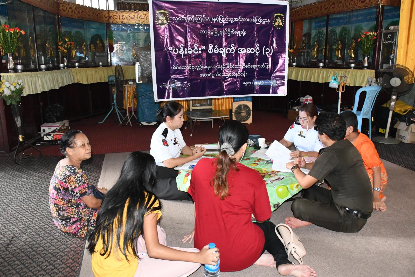 ရန်ကုန်တိုင်းဒေသကြီး သင်္ဃန်းကျွန်းခရိုင် တာမွေမြို့နယ် တာမွေကြီး(ခ)ရပ်ကွက်ရှိ တာမွေဓမ္မာရုံ၌ ယမန်နေ့ နံနက်ပိုင်းအချိန်က မြို့နယ်လူဝင်မှုကြီးကြပ်ရေးနှင့်ပြည်သူ့အင်အားဝန်ကြီးဌာနမှ မြို့နယ်လဝကမှူး ဒေါ်ဥမ္မာရွှေ ဦးဆောင်သည့်အဖွဲ့မှ တာမွေကြီး(ခ) ရပ်ကွက်အတွင်း နေထိုင်ကြသော နိုင်ငံသားစိစစ်ရေးကတ်ပြား လုံးဝမရရှိသေးသည့် မြန်မာတိုင်းရင်းသားလူမျိုးနွယ်စုများအား ကိုင်ဆောင်သင့်သည့် နိုင်ငံသားစိစစ်ရေးကတ်ပြား တစ်မျိုးမျိုးရရှိ နိုင်ရေးအတွက် ပန်းခင်းစီမံချက် အဆင့် (၃)ဖြင့် မြေပြင်ကွင်းဆင်းဆောင်ရွက်ပေးလျက်ရှိကြောင်း သိရသည်။