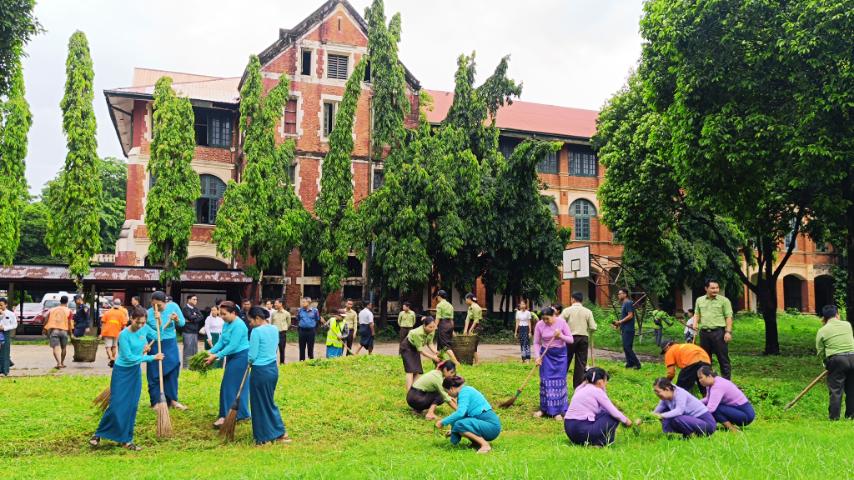 အဆိုပါစာသင်ကျောင်းအတွင်း ကျောင်းအလံတိုင်ရှေ့ရှိ ပေါင်းမြက်များရှင်းလင်းပေးခြင်း၊ ကျောင်းအားကစားကွင်းအတွင်းရှိ ချုံနွယ်များပေါင်းမြက်များ ရှင်းလင်းပေးခြင်း၊ ကျောင်းဝန်းအတွင်းရှိ အုတ်ရေမြောင်းများအတွင်းသို့ သန့်ရှင်းရေးပြုလုပ်ခြင်း၊ အမှိုက်များရှင်းလင်းခြင်း၊ အရိပ်ရအပင်များ၏ အောက်ခြေအခက်အလက်များ ရှင်းလင်း၍ အလင်းဖွင့်ပေးခြင်း၊ တွယ်ကပ်သစ်ပင်များရှင်းလင်းခြင်း၊ စာသင်ခန်းများအတွင်း ခြင်ဆေးမှုတ်ခြင်း၊ အုတ်ရေကန်များအား အဘိတ်ဆေးခတ်ခြင်းလုပ်ငန်းများအား စုပေါင်းဆောင်ရွက်ခဲ့ရာ ထိုစုပေါင်းဆောင်ရွက်ရာသို့ မြို့နယ်စီမံအုပ်ချုပ်ရေးအဖွဲ့ဥက္ကဋ္ဌ ဦးစိုးလှိုင်မောင်နှင့် အဖွဲ့ဝင်များ၊ မြို့နယ်ပညာရေးမှူးနှင့် အ.ထ.က (၆)ကျောင်းမှ ကျောင်းအုပ်ဆရာမကြီးနှင့် ဆရာ/ဆရာမများ၊ ဌာနဆိုင်ရာများ၊ မြို့နယ်စည်ပင်သာယာအုပ်ချုပ်ရေးမှူးနှင့် ရုံးဝန်ထမ်းများ၊ မြို့နယ်အမျိုးသမီးရေးရာအဖွဲ့ဝင်များ၊ မြို့နယ်မိခင်နှင့်ကလေးစောင့်ရှောက်ရေးအသင်းအဖွဲ့ဝင်များ၊ ရေစီးရေလာဝန်ထမ်းများ၊ လမ်းတံတားဝန်ထမ်းများ၊ သန့်ရှင်းရေးဝန်ထမ်းများ၊ မြို့နယ်ပန်းဥယျာဥ်ဝန်ထမ်းများ၊ ကျန်းမာရေးဝန်ထမ်းများစုပေါင်းသန့်ရှင်းရေးဆောင်ရွက်ခဲ့ပြီး ထွက်ရှိလာသော မြောင်းချေးများ၊ အမှိုက်များနှင့် သစ်ကိုင်းအခက်အလက်များအား ရေစီးရေလာမှ Forland (၁)စီးဖြင့် သတ်မှတ်နေရာသို့ စွန့်ပစ်ခဲ့ကြောင်း သတင်းရရှိပါသည်။