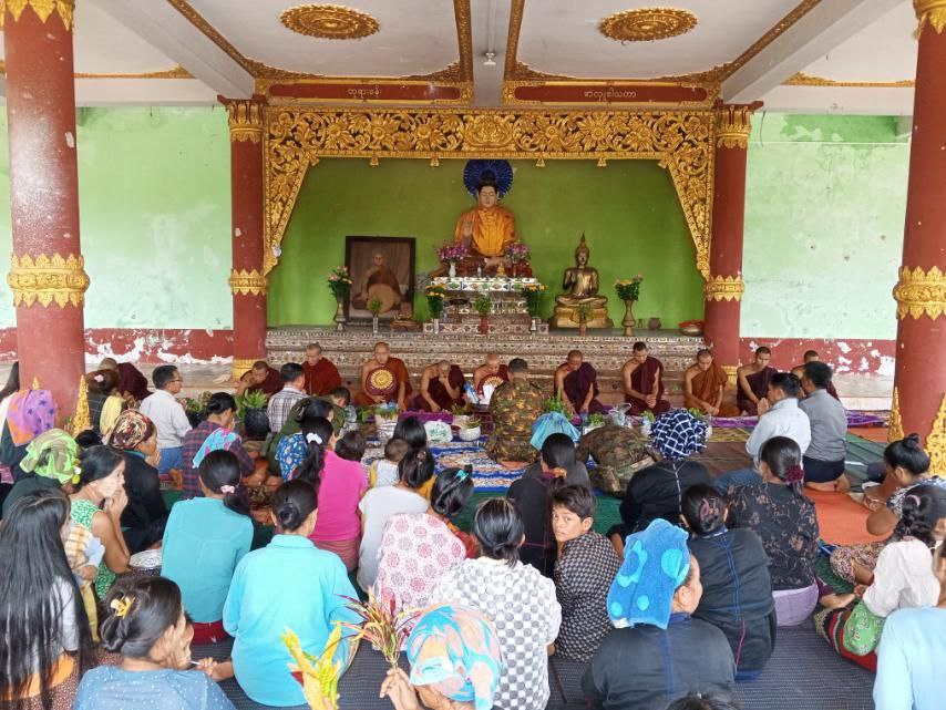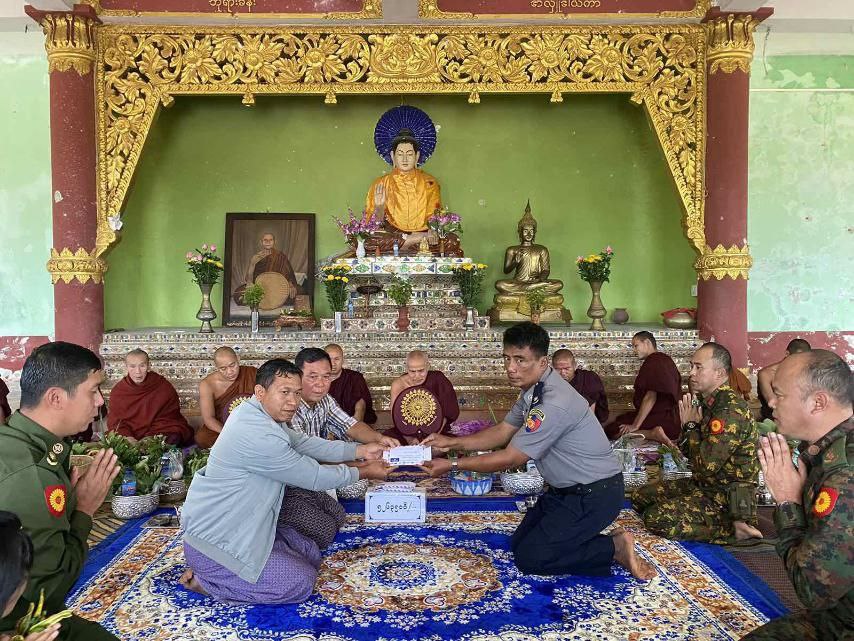 ရှေးဦးစွာ စစ်ဆင်ရေးကွပ်ကဲရေးမှူး ဗိုလ်မှုးကြီးကျော်သူရ၊ မြို့နယ်စီမံအုပ်ချုပ်ရေးအဖွဲ့ အဖွဲ့ဝင်များ၊ မြို့နယ်အဆင့်ဌာနဆိုင်ရာ အကြီးအကဲများနှင့် ဝန်ထမ်းများ၊ ရပ်ကွက်အုပ်ချုပ်ရေးမှူးများ၊ ဒေသခံပြည်သူများတို့က နမောတဿသုံးကြိမ်ရွတ်ဆို၍ ဆရာတော်၊ သံဃာတော်များထံမှ ငါးပါးသီလဆောက်တည်ကြပြီး သံဃာတော်အရှင်သူမြတ်တို့မှ အန္တရာယ်ကင်းပရိတ်တရားတော်များ ရွတ်ဖတ်တော်မူကြသည်။