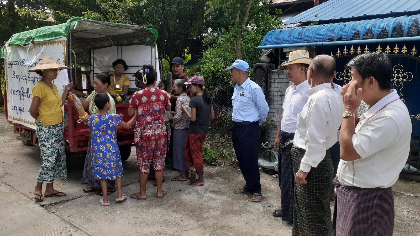 ဧရာဝတီတိုင်းဒေသကြီး၊ မြန်အောင်ခရိုင်၊ မြန်အောင်မြို့နယ် ဆီကုန်သည်နှင့် ဆီလုပ်ငန်းရှင်များအသင်းမှ စျေးကားဖြင့် အမှတ်(၂)ရပ်ကွက်အုပ်ချုပ်ရေးမှူးရုံးရှေ့တွင် ရပ်ကွက်အတွင်းရှိ အခြေခံအိမ်ထောင်စုများအား ယမန်နေ့နံနက်က စားအုန်းဆီ တစ်ပိသာ ၅၈၈၁ ကျပ်နှုန်းဖြင့် စားအုန်းဆီပိဿာ ၁၁၀ ပိဿာရောင်းချပေးခဲ့ကြောင်း သိရသည်။