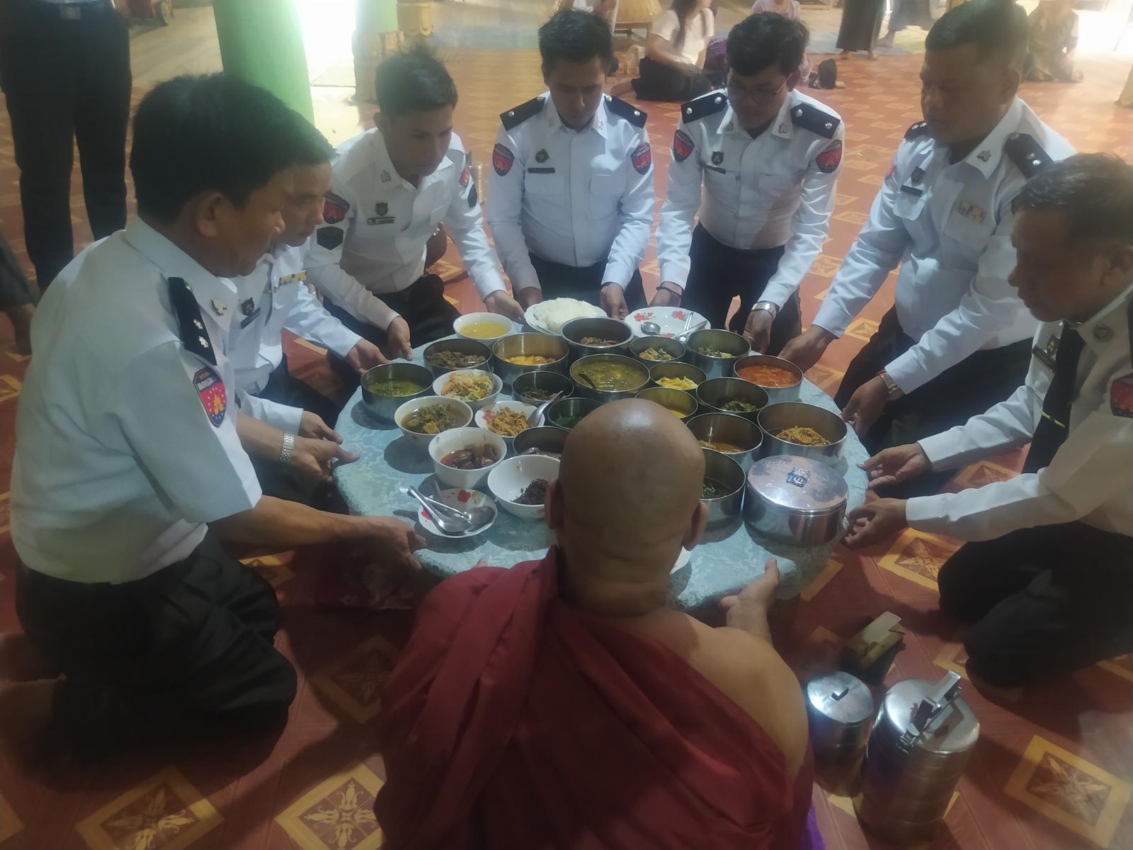 ရှေးဦးစွာ မြို့သစ်မြို့နယ် လူဝင်မှုကြီးကြပ်ရေးနှင့်ပြည်သူ့အင်အားဝန်ကြီးဌာန၊ မြို့နယ်ဦးစီးမှူးနှင့်ဝန်ထမ်းများမှ သံဃာတော်များအား မွန်လတ်ဆွမ်းကပ်လှူသည်။