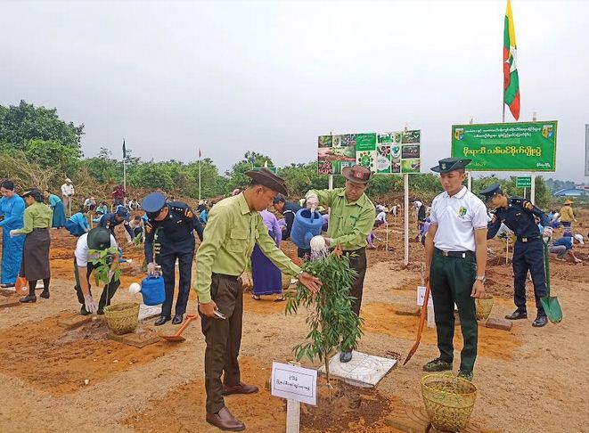 ထို့နောက် တက်ရောက်လာကြသည့် ဌာနဆိုင်ရာအကြီးအကဲများနှင့် ဝန်ထမ်းများ၊ ရဲတပ်ဖွဲ့ဝင်များ၊ မီးသတ်တပ်ဖွဲ့ဝင်များ၊ အမျိုးသမီးရေးရာအဖွဲ့ဝင်များ၊ လူမှုရေးအသင်းအဖွဲ့များ၊ ရပ်ကွက်အုပ်ချုပ်ရေးမှူးများနှင့် ပြည်သူများက ကျွန်း ၁၀၀၊ ခါတော်မီ ၁၀၀၊ ယမနေ ၁၀၀၊ မယ်ဇလီ ၂၅၀၊ ပန်းဝါ ၁၅၀၊ ထင်းရှူး ၂၀၊ ခရေ ၃၀၊ စုစုပေါင်း ၇၅၀ ပင်ကို စုပေါင်း စိုက်ပျိုးခဲ့ကြသည်။