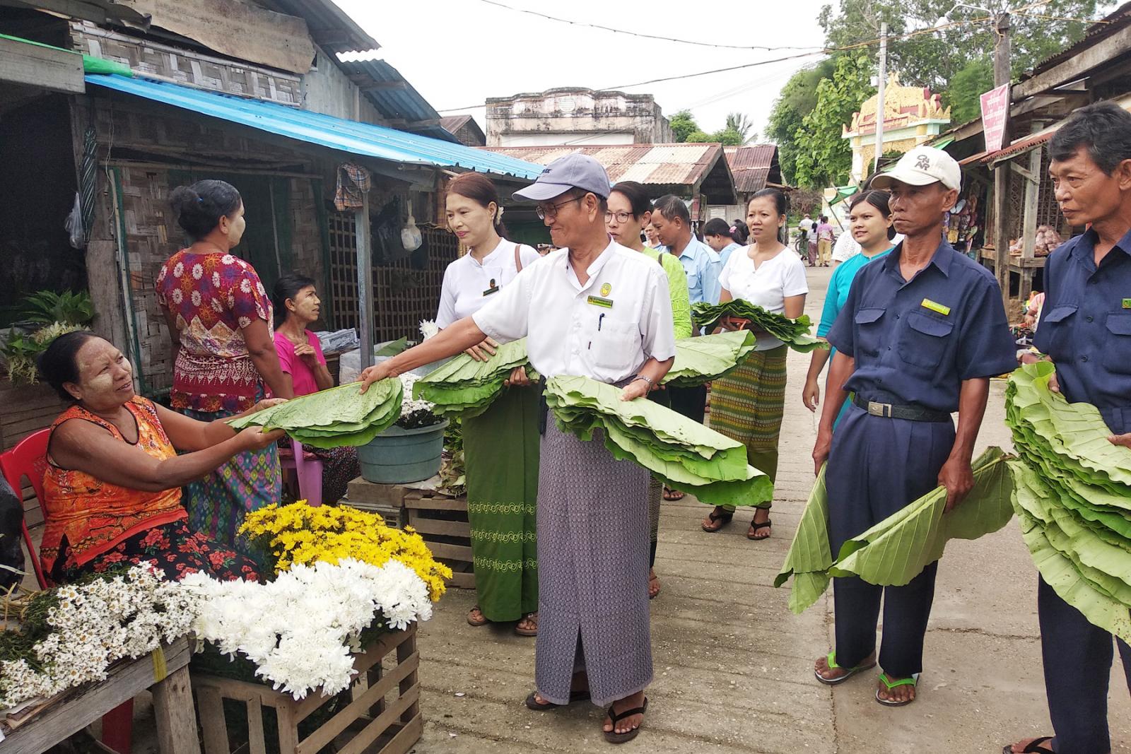 မကွေးတိုင်းဒေသကြီး၊ သရက်ခရိုင်၊ ကံမမြို့၌ သဘာဝပတ်ဝန်းကျင်ထိန်းသိမ်းရေးနှင့် ပြည်သူများပလတ်စတစ်အိတ်၊ ကြွပ်ကြွပ်အိတ်လျော့နည်းသုံးစွဲစေရန်ရည်ရွယ်၍ မြို့နယ်စည်ပင်သာယာ မြို့မဈေးအတွင်း ဈေးရောင်းဈေးဝယ်ပြည်သူများ ပလတ်စတစ်ကြွပ်ကြွပ်အိတ်အစား ငှက်ပျောဖက်၊ အင်ဖက်၊ စက္ကူအိတ်များ အသုံးပြုနိုင်ရေးအသိပညာပေးခြင်းနှင့် ကြွပ်ကြွပ်အိတ်အစားထိုး အင်ဖက်များ အခမဲ့ဖြန့်ဝေခြင်းကို ယနေ့နံနက်(၇)နာရီက အဆိုပါဈေးအတွင်း ဆောင်ရွက်ခဲ့ကြသည်။