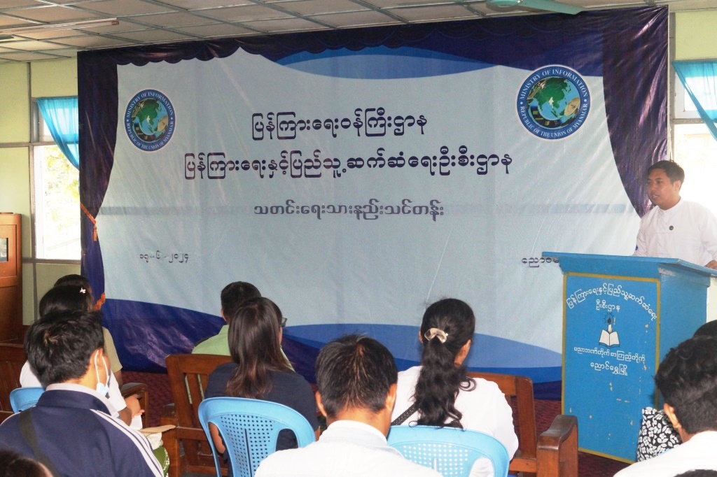 ဌာနဆိုင်ရာအသီးသီး၊ အဖွဲ့အစည်းအသီးသီးတွင် တာဝန်ထမ်းဆောင်လျက်ရှိသည့်ဝန်ထမ်းများ မိမိတို့၏ဌာန၊ အဖွဲ့အစည်းများ၏ ဆောင်ရွက်နေမှုလုပ်ငန်းများကို ကျင့်ဝတ်၊ စည်းကမ်းများနှင့်အညီ သတင်းရေးသားထုတ်ပြန်နိုင်စေရန်၊ သတင်းသဘောတရားကို ရင်းနှီးကျွမ်းဝင်မှုရှိစေရန်နှင့် အခြေခံသတင်းရေးသားခြင်းကို တတ်မြောက်နိုင်စေရန်ရည်ရွယ်၍ အခြေခံသတင်းရေးသား နည်းသင်တန်းဖွင့်ပွဲကို ယနေ့နံနက်(၁၀)နာရီက ရှမ်းပြည်နယ်၊ ညောင်ရွှေမြို့ ပြန်ကြားရေးနှင့်ပြည်သူ့ဆက်ဆံရေးဦးစီးဌာန၊ လူထုအခြေပြုဗဟိုဌာနခန်းမ၌ ပြုလုပ်ခဲ့သည်။