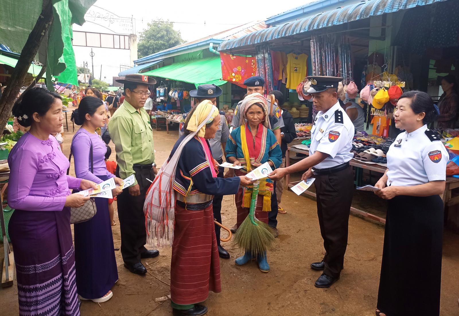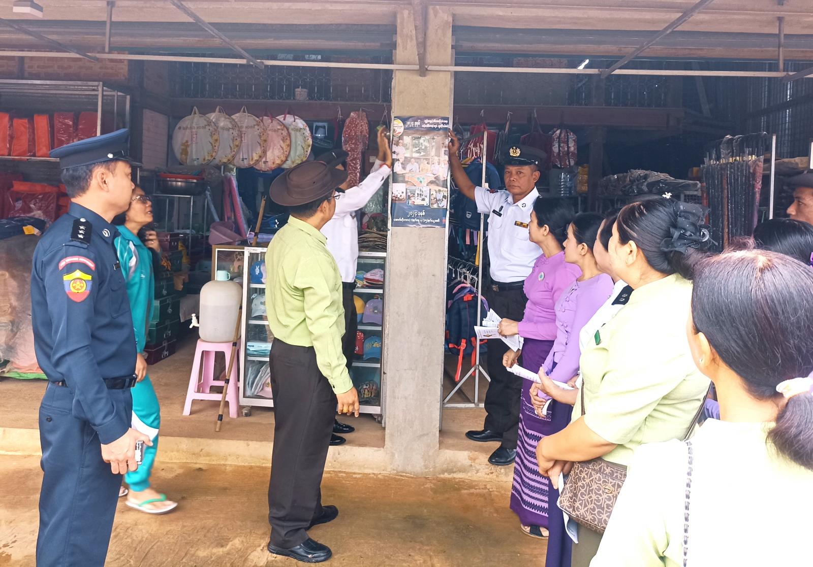 မြို့နယ်စီမံအုပ်ချုပ်ရေးအဖွဲ့ဥက္ကဋ္ဌ ဦးစိုးမင်းအောင်၊ မြို့နယ်လဝကဦးစီးမှူးဦးစိုးနိုင်နှင့်ဝန်ထမ်းများ၊ မြို့နယ်ရဲတပ်ဖွဲ့ဝင်များ၊ မီးသတ်တပ်ဖွဲ့ဝင်များ၊ အမျိုးသမီးရေးရာအဖွဲ့ဥက္ကဋ္ဌနှင့်အဖွဲ့ဝင်များ၊ မိခင်နှင့်ကလေးကျန်းမာရေးစောင့်ရှောက်ရေးအသင်းမှတာဝန်ရှိသူများ၊ ဌာနဆိုင်ရာဝန်ထမ်းများက မြို့မဈေးကြီးရှေ့နှင့်ဈေးကြီးအတွင်း ခရီးသွားပြည်သူများနှင့် ဈေးသူဈေးသားများကို လက်ကမ်းစာစောင်များဖြန့်ဝေပေးခြင်း၊ လမ်းဆုံလမ်းခွများ၊ လူစည်ကားရာရပ်ကွက်များ၊ စားသောက်ဆိုင်များ၊ ပြန်ကြားရေးနှင့်ပြည်သူ့ဆက်ဆံရေးဦးစီးဌာန နံရံကပ်ဘုတ်တို့တွင် ပိုစတာများကပ်ခြင်းစသည်တို့ကို စုပေါင်းဆောင်ရွက်ခဲ့ကြသည်။