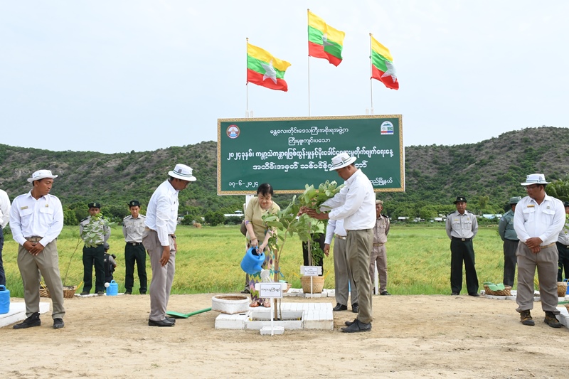 ၂၀၂၄ ခုနှစ် ကမ္ဘာ့သဲကန္တာရဖြစ်ထွန်းမှုနှင့် မိုးခေါင်ရေရှားမှု တိုက်ဖျက်ရေးနေ့ (World Day to Combat Desertification and Drought) အထိမ်းအမှတ် သစ်ပင်စိုက်ပျိုးပွဲတော် အခမ်းအနားကို ယမန်နေ့ နံနက်ပိုင်းက ကျောက်ဆည်ခရိုင်၊ ကျောက်ဆည်မြို့၊ မြင်စိုင်းကျေးရွာအနီး၊ မြို့ရှောင်လမ်းတွင်ကျင်းပရာ မန္တလေးတိုင်းဒေသကြီး တရားလွှတ်တော်တရားသူကြီးချုပ် ဒေါ်ခင်သင်းဝေ၊ တိုင်းဒေသကြီးအစိုးရအဖွဲ့ဝင် ဝန်ကြီးများနှင့် တာဝန်ရှိသူများ၊ တက္ကသိုလ်များမှ ပါမောက္ခချုပ်များ၊ ခရိုင်/မြို့နယ် စီမံအုပ်ချုပ်ရေးအဖွဲ့များ၊ ဌာနဆိုင်ရာများ၊ ဆရာ၊ ဆရာမများ၊ ကျောင်းသား၊ ကျောင်းသူများ၊ လူမှုရေးအသင်းအဖွဲ့များနှင့် ပြည်သူများအတူတကွ စုပေါင်းစိုက်ပျိုးကြသည်။