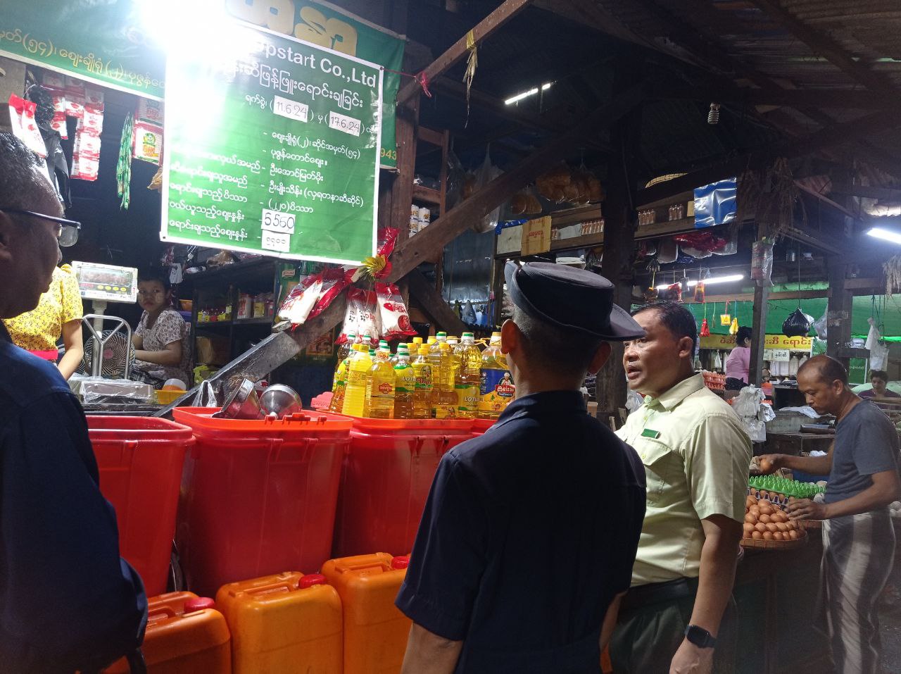 ရန်ကုန်တိုင်းဒေသကြီး၊ ဗိုလ်တထောင်ခရိုင်၊ ပုဇွန်တောင်မြို့နယ် ပုဇွန်တောင်ဈေး၌ စားအုန်းဆီများ ဈေးနှုန်းမြှင့်တင်ရောင်းချခြင်း ရှိ/မရှိ ကွင်းဆင်းစစ်ဆေးခြင်းကို ယနေ့နံနက် ၉ နာရီအချိန်က မြို့နယ် စီမံအုပ်ချုပ်ရေးအဖွဲ့နှင့် ပုဇွန်တောင်ဈေး တာဝန်ခံများ ပူးပေါင်း၍ စားအုန်းဆီ ရောင်းချလျက်ရှိသော ကုန်ပစ္စည်းအရောင်းဆိုင်များအား ကွင်းဆင်းစစ်ဆေးခဲ့ကြသည်။