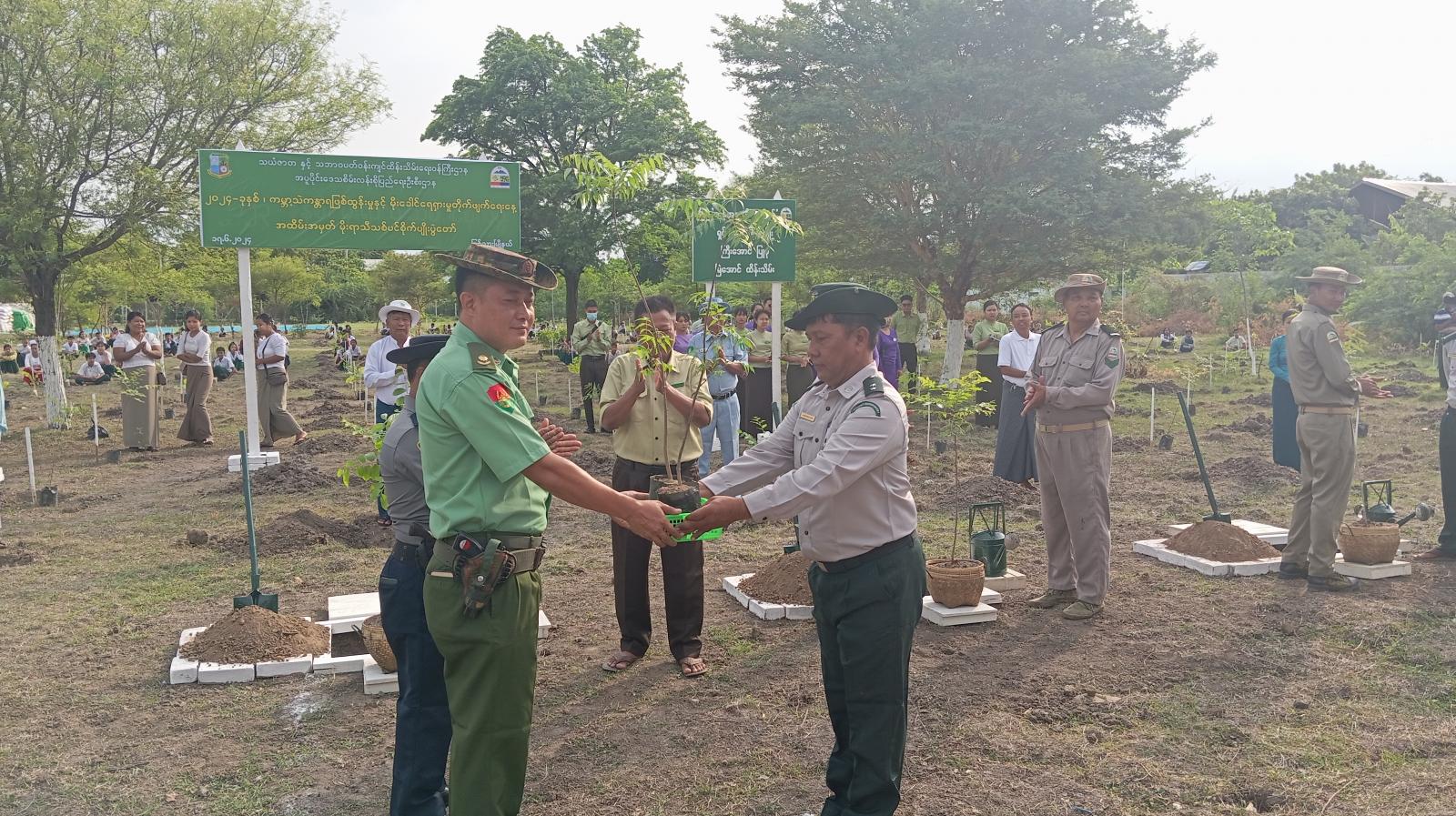 ရှေးဦးစွာ မြို့နယ်စီမံအုပ်ချုပ်ရေးအဖွဲ့ ဥက္ကဋ္ဌ မြို့နယ်အုပ်ချုပ်ရေးမှူး ဦအေးခိုင်က သဘာဝပတ်ဝန်း ကျင်ကိုထိန်းသိမ်းရန် သစ်တောသစ်ပင်ပြုံးတီးမှုမရှိစေရေးနှင့် ပတ်ဝန်းကျင်စိမ်းလန်းစိုပြည်စေရန်အတွက် ရည်ရွယ်၍ သစ်ပင်စိုက်ပျိုးပွဲတော် စိုက်ပျိုးရခြင်းဖြစ်ကြောင်း ပြောကြားပြီး ကျွန်းပင် (၂၀) ပင်၊ ယင်းမာပင် (၂၀၀) ပင်၊ တမာပင် (၁၀၀) ပင်၊ သင်္ဘောကုက္ကိုပင် (၆၀) ပင်၊ ဖြောက်ဆိပ်ပင် (၁၀၀) ပင်နှင့် ယူကလစ်ပင် (၆၀) ပင် စုစုပေါင်း အပင် (၅၄၀) ပင် စိုက်ပျိုးခဲ့ကြောင်း သိရသည်။