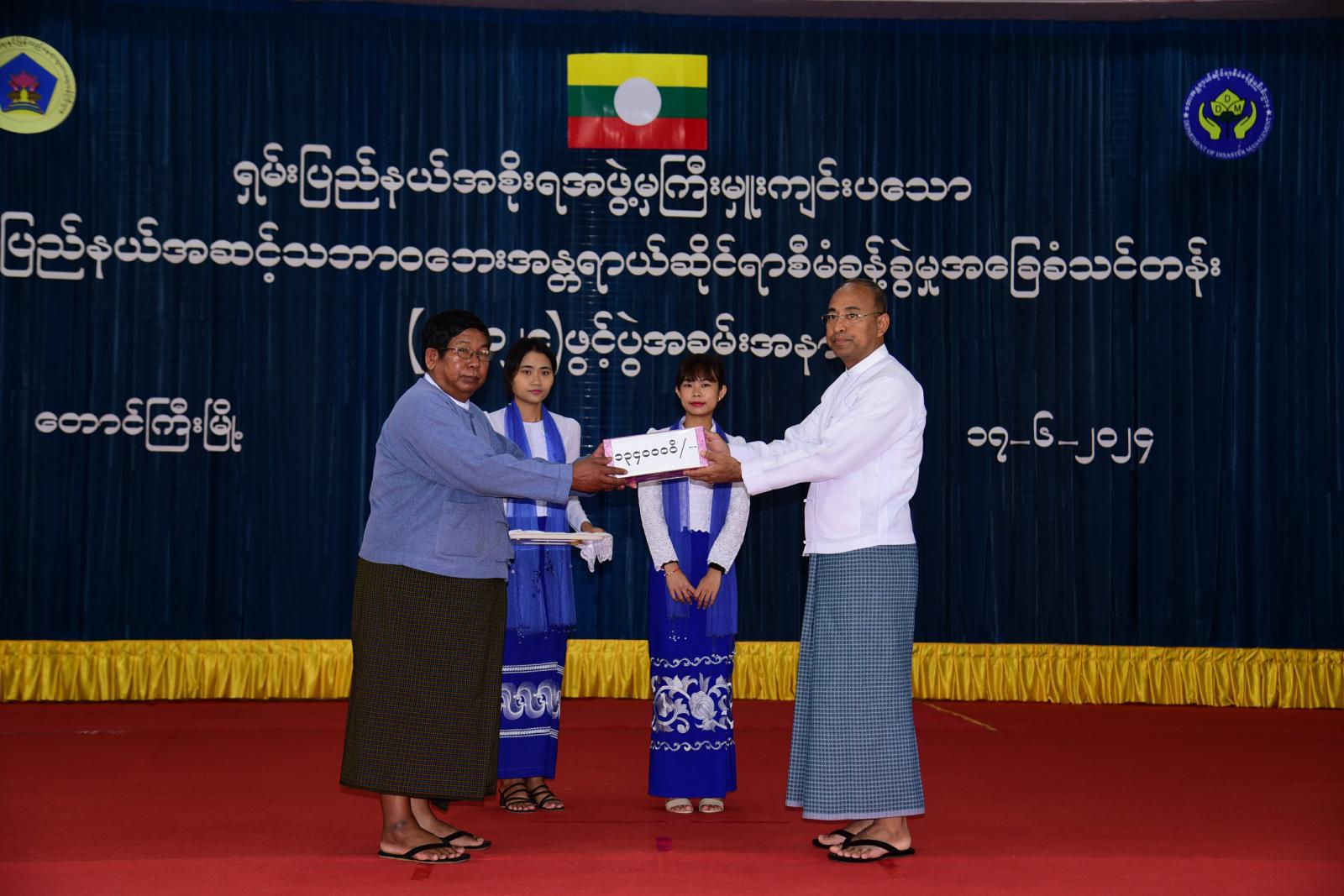 ဆက်လက်၍ ပြည်နယ်အဆင့် သဘာဝဘေးအန္တရာယ်ဆိုင်ရာ စီမံခန့်ခွဲမှုသင်တန်း (၁/၂၀၂၄) အတွက် စားစရိတ်များကို ပြည်နယ်ဝန်ကြီးချုပ် ဦးအောင်အောင်က ထောက်ပံ့ပေးအပ်ရာ ပြည်နယ်လူမှုဝန်ထမ်း၊ ကယ်ဆယ်ရေးနှင့် ပြန်လည်နေရာချထားရေး ပြည်နယ်ဦးစီးမှူးမှ လက်ခံရယူပြီး စုပေါင်းမှတ်တမ်းတင် ဓါတ်ပုံရိုက်ကူးကြ၍ ပြည်နယ်ဝန်ကြီးချုပ်နှင့် တာဝန်ရှိသူများက ခန်းမအတွင်း ခင်းကျင်းပြသထားသော သဘာဝဘေး အသိပညာပေးပြခန်းများအား လှည့်လည်ကြည့်ရှုအားပေးကြကြောင်း သိရသည်။