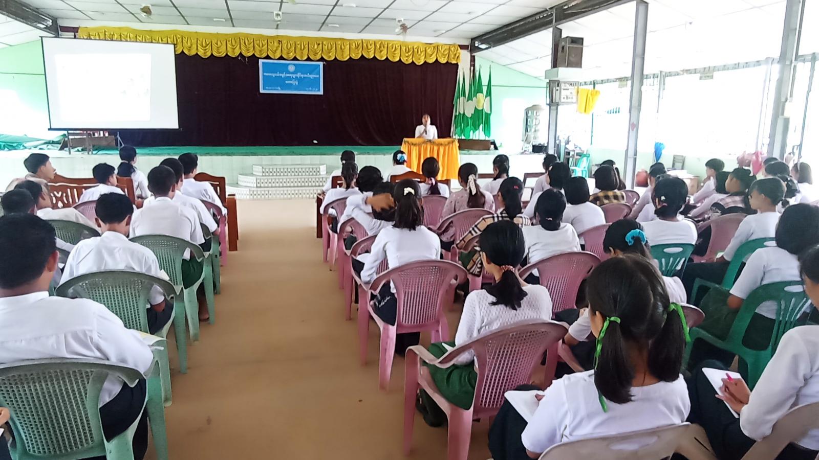 ထို့နောက် ပဲခူးတိုင်းဒေသကြီး၊ လူမှုဝန်ထမ်းရုံးမှ ဒုတိယဦးစီးမှူး ဒေါ်ခိုင်ခိုင်ဦးက ကလေးသူငယ်အခွင့်အရေးဆိုင်ရာများနှင့် ပတ်သတ်၍ ပြစ်မှုပြစ်ဒဏ်များ၊ ကလေးသူငယ်များအားအကြမ်းဖက် ခြင်းဆိုင်ရာများ စသည်တို့ကို အကျယ်တဝင့်ရှင်းလင်းဟောပြောခဲ့ပြီး တက်ရောက်လာသော ကျောင်းသား/ကျောင်းသူများက သိရှိလိုသည့် အချက်များအားမေးမြန်းမှုကို သက်ဆိုင်ရာတာဝန်ရှိသူများက ပြန်လည်ဖြည့်စွက် ဆွေးနွေးပြောကြားခဲ့ကြောင်း သိရသည်။