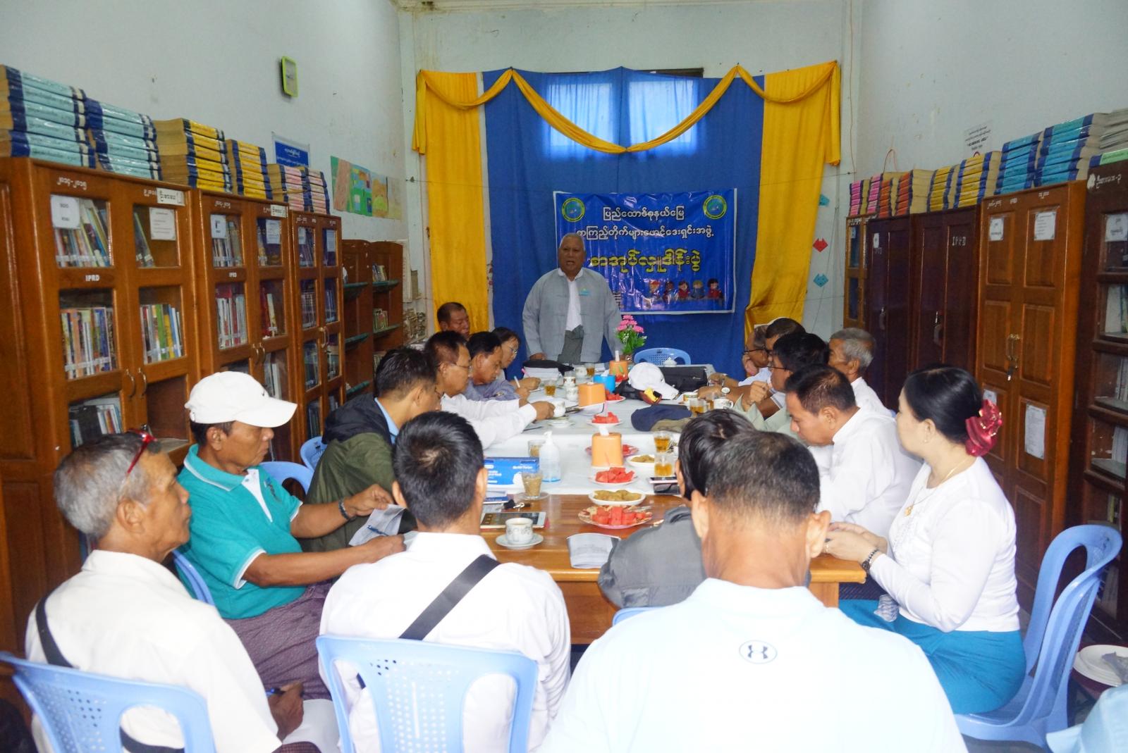 ရှေးဦးစွာ ပြည်ထောင်စုနယ်မြေ စာကြည့်တိုက်များဖောင်ဒေးရှင်းဥက္ကဋ္ဌ ဦးမောင်မောင်တာ(သဘာဝ)က ရပ်ကွက်/ကျေးရွာ စာကြည့်တိုက်များသို့ စာအုပ်များလှူဒါန်းနိုင်ရေးအတွက် စီစဉ်ဆောင်ရွက်ထားမှု အခြေအနေများနှင့် ပြည်ထောင်စုနယ်မြေ စာကြည့်တိုက်များဖောင်ဒေးရှင်း အနေဖြင့် ကျေးရွာစာကြည့်တိုက်များ ရှင်သန်ခိုင်မာရေးအတွက် ဆက်လက်ဆောင်ရွက်သွားမည့် အစီအစဉ်များအား ရှင်းလင်းဆွေးနွေးသည်။