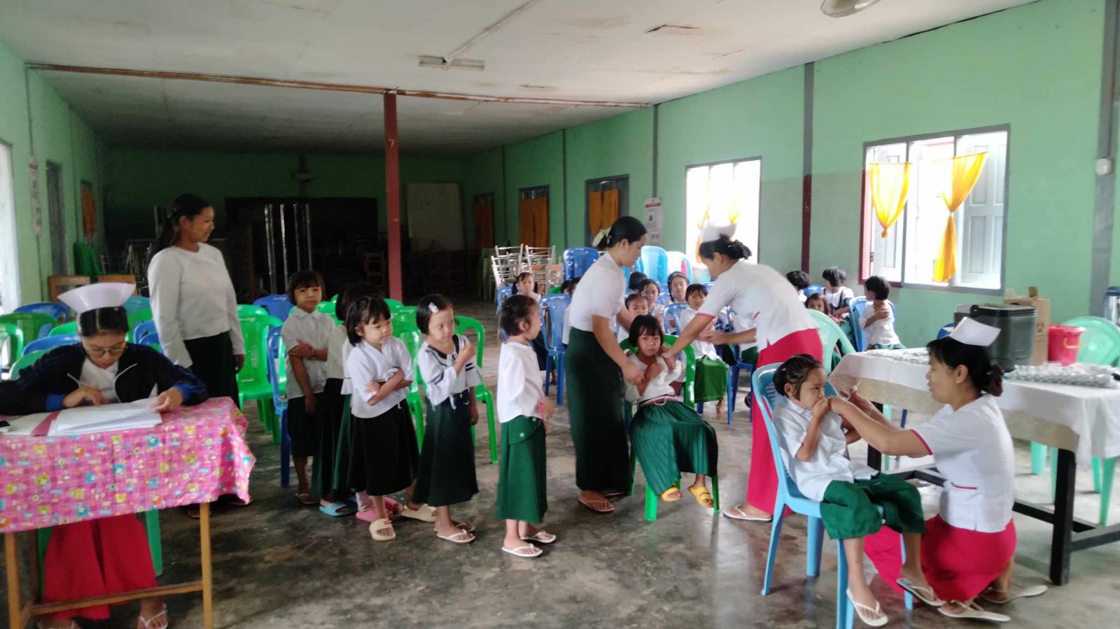 ထိုသို့ ကာကွယ်ဆေးထိုးနှံပေးခြင်းကို ကျန်းမာရေးဦးစီးဌာနမှ ကျန်းမာရေးဝန်ထမ်းများက ဆောင်ရွက်ပေး၍ အခြေခံကျောင်းများရှိ အသက်(၅)နှစ်မှ (၇)နှစ်ကြား ကျောင်းသား၊ ကျောင်းသူများအား ထိုးနှံပေးခြင်းဖြစ်ပြီး ဆရာ၊ ဆရာမများနှင့် ကလေးမိဘများက ပူးပေါင်းဆောင်ရွက်ပေးခဲ့ကြောင်း သိရှိရပါသည်။