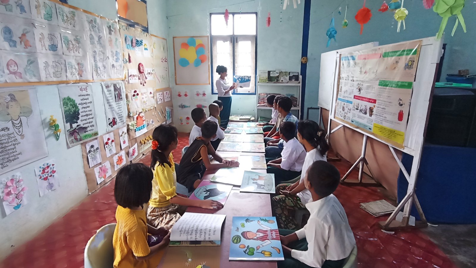 ဆက်လက်၍ မြို့နယ်ဦးစီးမှူး ဒေါ်သန်းသန်းဝင်းက ကျောင်းသား/ကျောင်းသူများအား စက္ကူပြဇာတ်၊ ပုံပြင်စာအုပ်များဖြင့် ပုံပြင်များပြောပြခဲ့ပြီး ကျောင်းသား/ ကျောင်းသူများက ပြည်သူ့စာကြည့်တိုက်အတွင်းရှိ မိမိတို့ကြိုက်နှစ်သက်ရာ စာအုပ်များအား လေ့လာဖတ်ရှုခဲ့ကြောင်း သိရသည်။
