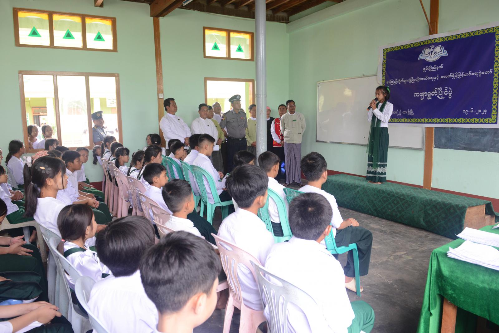 ယင်းနောက် ကျောင်းခန်းမတွင် အခမ်းအနားကို ဆက်လက်ကျင်းပရာ ပြည်နယ်အစိုးရအုပ်ချုပ်ရေးအဖွဲ့ခွဲ(ရှမ်းမြောက်)ဥက္ကဋ္ဌက အဖွင့်အမှာစကားပြောကြားရာတွင် ယခုကဲ့သို့သောပွဲတော်ကို ကျောင်းသားလူငယ်များ ဗလငါးတန်ဖွံ့ဖြိုးတိုးတက်ရေး၊ အနာဂတ်တွင်အားထားရမည့် သားကောင်းရတနာများ ပေါ်ထွန်းလာရေးအတွက် ပြုလုပ်ပေးခြင်းဖြစ်ကြောင်း ပြောကြားပြီး၊ ပြန်ကြားရေးနှင့်ပြည်သူ့ဆက်ဆံရေးဦးစီးဌာန၊ တွဲဖက်ပြည်နယ်ရုံးမှ ဒုတိယညွှန်ကြားရေးမှူးက ပွဲတော်ကျင်းပရခြင်းနှင့်စပ်လျဉ်း၍ ရှင်းလင်းတင်ပြသည်။