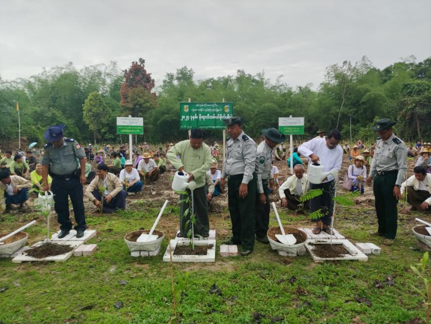 ထို့နောက် မြိုနယ်စီမံအုပ်ချုပ်ရေးအဖွဲ့ဥက္ကဋ္ဌနှင့် တာဝန်ရှိသူများက ပျိုးပင်များ အသီးသီးပေးအပ်ပြီး တက်ရောက်လာသူများက မန်းဂျန်ရှား(၁၀၀၀)ပင်နှင့် ပျဥ်းမ(၂၀၀) စုစုပေါင်း (၁၂၀၀)ပင်စိုက်ပျိုးခဲ့ကြောင်း သိရသည်။