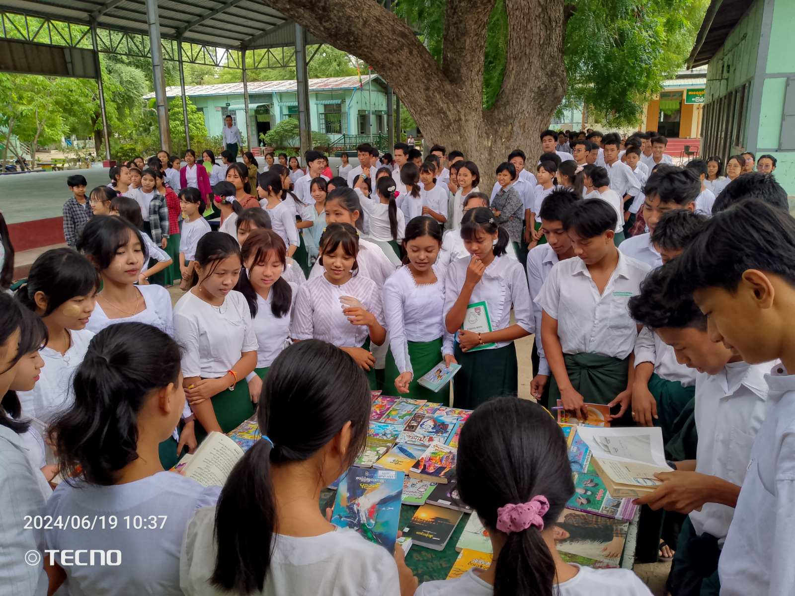 ယင်းနောက် တက်ရောက်လာသော ကျောင်းသား/သူများက ခန်းမအတွင်းပြသထားသော သုတ/ရသ စာအုပ်၊ စာစောင်များနှင့် မူးယစ်ဆေးဝါးအန္တရာယ် တားဆီးကာကွယ်ရေး အသိပညာပေး နံရံကပ်စာစောင်များအား စိတ်ဝင်တစား လေ့လာကြည့်ရှုခဲ့ကြကြောင်း သိရသည်။