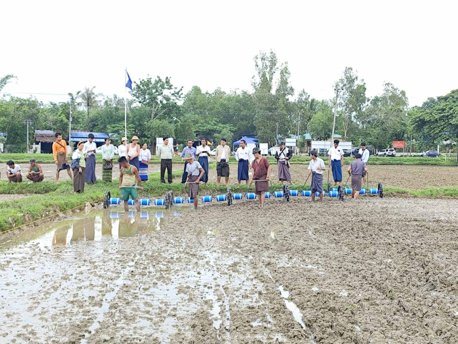 ရန်ကုန်တိုင်းဒေသကြီး၊ တွံတေးခရိုင်၊ ကွမ်းခြံကုန်းမြို့နယ်တွင် ၂၀၂၄-၂၀၂၅ ခုနှစ်၊ မိုးစပါးမျိုးစေ့ချကိရိယာ(Seeder)ဖြင့် စိုက်ပျိုးခြင်း ကွင်းသရုပ်ပြပွဲအခမ်းအနားကို ယမန်နေ့က အင်္ဂလုံးကျေးရွာအုပ်စု ကွင်းအမှတ်(၃၈၁) တောင်သူ ဦးမြင့်ဦး၏ လယ်မြေ (၆)ဧက၌ ကျင်းပပြုလုပ်ခဲ့ကြသည်။