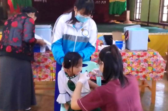 ရှမ်းပြည်နယ်(တောင်ပိုင်း)၊ နမ့်စန်ခရိုင်၊ မိုးနဲမြို့နယ်၊ ပြည်သူ့ကျန်းမာရေးဝန်ထမ်းများသည် ကျောင်းအခြေပြု အသက် (၅) ပြည့်ပြီး (၇) နှစ်မကျော်သောKG ကျောင်းသား/သူ များအား ဆုံဆို့နာရောဂါနှင့် မေးခိုင်ရောဂါ (DT) ကာကွယ်ဆေးထိုးနှံခြင်းကို ယနေ့နံနက်ပိုင်းက စုရပ်ကျောင်းများဖြစ်သော မူလွန်(ဆိုင်းဖယ်)နှင့် အ.လ.က(ခွဲ)နမ့်စလိုင်ကျောင်းများသို့ ကွင်းဆင်းထိုးနှံပေးခဲ့ကြောင်း သိရသည်။