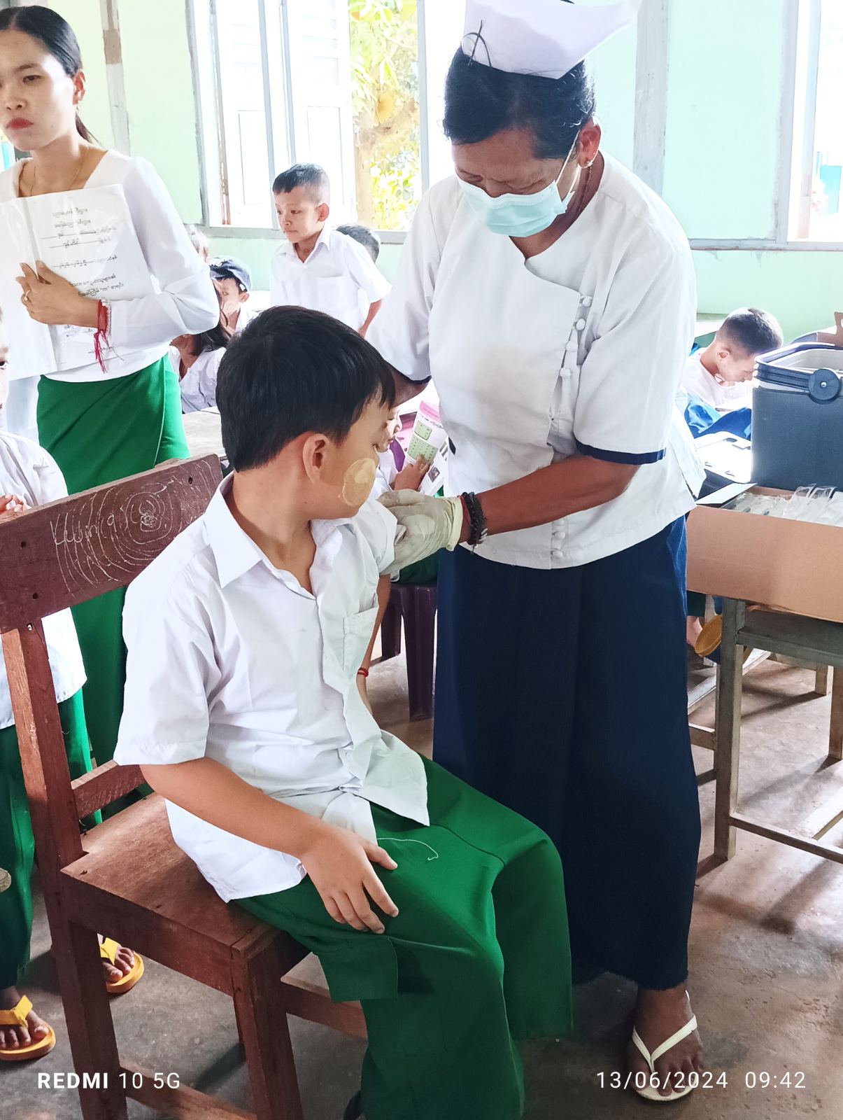 ထိုသို့ ကာကွယ်ဆေးထိုးနှံပေးခြင်းကို ကွန်ဟိန်းမြို့မိခင်နှင့်ကလေးကျန်းမာရေးဦးစီးဌာနမှ အမျိုးသမီးကျန်းမာရေးဆရာမ ဒေါ်ခင်မာအေးနှင့်ဝန်ထမ်းများက ဆောင်ရွက်ပေး၍ အခြေခံပညာကျောင်းများရှိ အသက်(၅)နှစ်မှ(၇)နှစ်ကြား ကျောင်းသား၊ကျောင်းသူများအားထိုးနှံပေးပြီး၊ ဆရာ၊ ဆရာမများနှင့် ပူးပေါင်းဆောင်ရွက်ပေးခဲ့ကြောင်း သိရသည်။