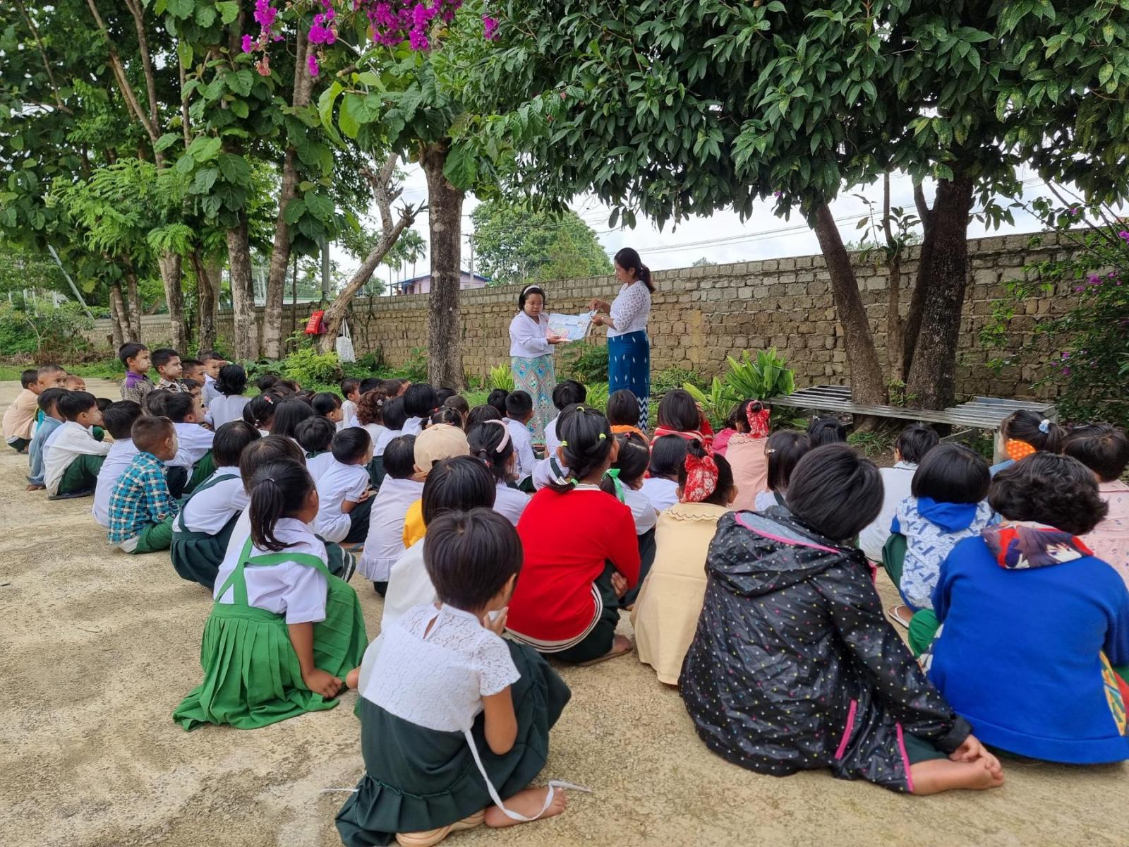 ထိုသို့ဆောင်ရွက်ရာတွင် ပြန်ကြားရေးနှင့်ပြည်သူ့ဆက်ဆံရေးဦးစီးဌာန ဒုတိယဦးစီးမှူး ဒေါ်အိအိစိုးနှင့် စာကြည့်တိုက်လက်ထောက်-၃ ဒေါ်နော်မေစံပယ်ဖူးတို့က မူလတန်းအဆင့် ကျောင်းသား၊ ကျောင်းသူများအား ငယ်စဉ်ကတည်းက စာဖတ်သည့် အလေ့အကျင့်ကောင်းများ ရရှိစေရန် ရည်ရွယ်၍ အသိပညာပေးပုံပြင်များဖတ်ပြခြင်း၊ ကဗျာများရွတ်ဆိုပြခြင်းနှင့် စာဖတ်စွမ်းရည်မြင့်မားတိုးတက်စေရန် ရုပ်ပုံပြစာအုပ်စာစောင်များ ဖတ်ရှုစေခြင်းများကို ပြုလုပ်ဆောင်ရွက်ပေးခဲ့ကြောင်း သိရသည်။