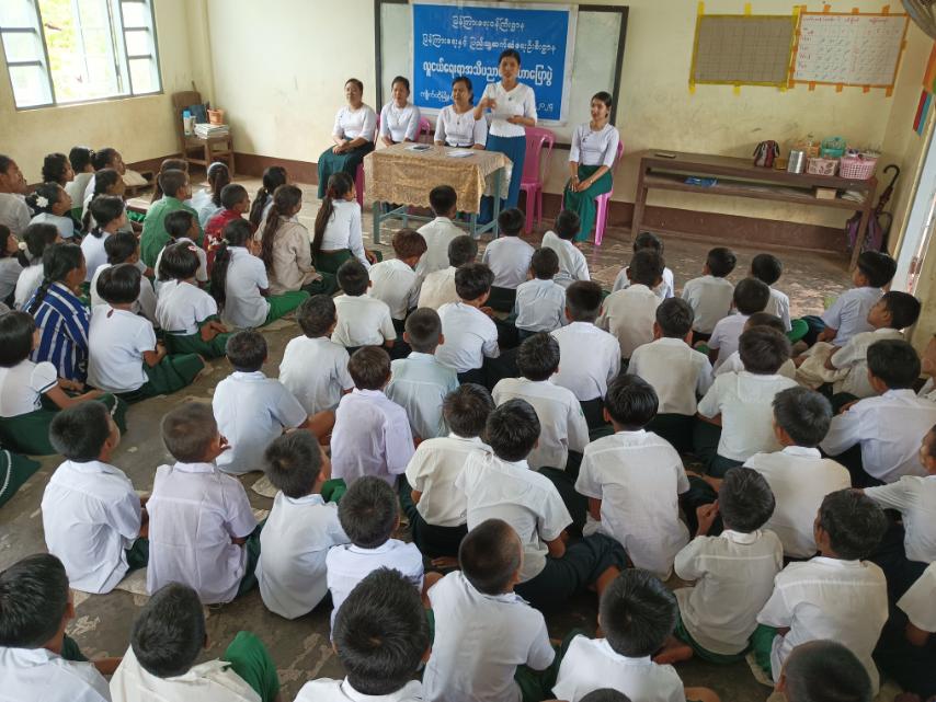 ရှေးဦးစွာကျောင်းအုပ်ဆရာမကြီး ဒေါ်နှင်းနှင်းဝေမှ အမှာစကားပြောကြားပြီး ပြန်ကြားရေးနှင့် ပြည်သူ့ဆက်ဆံရေးဦးစီးဌာနမှ ဦးစီးအရာရှိ ဒေါ်သန်းသန်းမော်က ကျောင်းသူ၊ ကျောင်းသား များအား မူးယစ်ဆေးဝါးအန္တရာယ်ကို သိရှိစေရန်၊ မူးယစ်ဆေးဝါး၏ ဆိုးကျိုးများနှင့် ရှောင်ကြဉ်ရမည့်အချက်များ၊ အားလပ်ချိန်ကို အကျိုးရှိစွာအသုံးပြုကြရေး၊ ကျောင်းစာကို ကြိုးစားကြသလို ဗဟုသုတတိုးပွားရေးအတွက် ပြင်ပစာပေများကိုပါ လေ့လာဖတ်ရှုကြရေးတို့ကို ဟောပြောဆွေးနွေးခဲ့သည်။