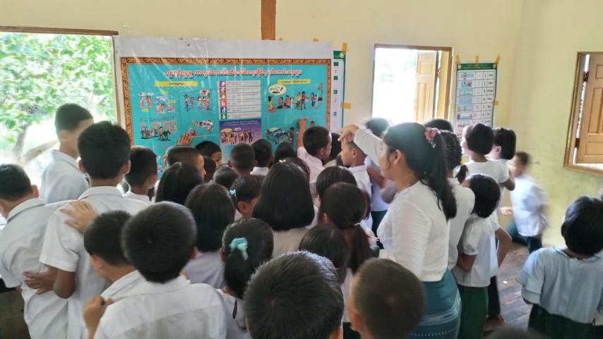 အဆိုပါ အသိပညာပေးလုပ်ငန်းတွင် ပြန်ကြားရေးနှင့်ပြည်သူ့ဆက်ဆံရေးဦးစီးဌာနမှ ကျောင်းသူ၊ ကျောင်းသားများ ဖတ်ရှုလေ့လာနိုင်ရန် ကလေးကဗျာများ၊ ရုပ်ပြပုံပြင်များ၊ စာစောင်များ စသည့် ကလေးများ အသိပညာတိုးပွားရေး စာအုပ်စာပေများနှင့် စာဖတ်ရှိန်မြှင့်တင်ရေး၊ မူးယစ်ဆေးဝါးအန္တရာယ် သတိပြုကာကွယ်ရေး စသည့် အသိပညာပေး နံရံကပ်စာစောင်များတို့ကို ခင်းကျင်းပြသရာ ကျောင်းသား၊ ကျောင်းသူများမှ စိတ်ပါဝင်စားစွာ ကြည့်ရှုလေ့လာခဲ့ကြောင်း သိရသည်။