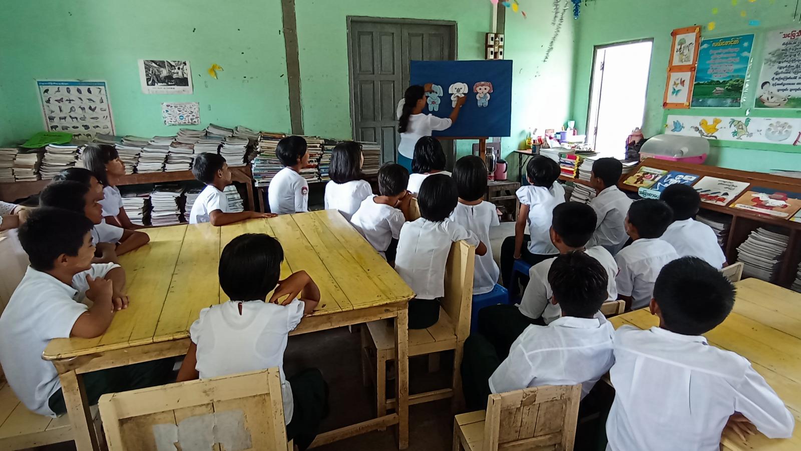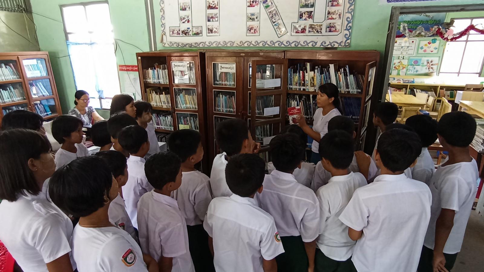 ရှေးဦးစွာ ပြန်ကြားရေးနှင့်ပြည်သူ့ဆက်ဆံရေးဦးစီးဌာနမှ ဦးစီးအရာရှိ ဒေါ်ဝင့်နန္ဒာဌေးက စာကြည့်တိုက်ဖွင့်လှစ်ရခြင်း၏ ရည်ရွယ်ချက်များကို ရှင်းလင်းပြောကြားခဲ့ပြီး ဒုတိယဦးစီးမှူး ဒေါ်ပြည့်ဖြိုးသူက (Mini Museum) တွင် ခင်းကျင်းပြသထားသော ပစ္စည်းများ၏ အသုံးဝင်ပုံ၊ အသုံးပြုပုံများ၊ စာငှားစာဖတ်ဝန်ဆောင်မှုလုပ်ငန်းများအား အသေးစိတ်ရှင်းလင်းပြောကြားခြင်း၊ ပြန်ကြားရေးနှင့်ပြည်သူ့ဆက်ဆံရေးဦးစီးဌာန ပြည်သူ့စာကြည့်တိုက်အနေဖြင့် သုတ၊ ရသစာအုပ်စာစောင်မျိုးစုံများ စီစဉ်ထားရှိကြောင်း၊ ကလေးစာဖတ်ခန်းဝန်ဆောင်မှု လုပ်ငန်းတစ်ခုဖြစ်သော(ရှန်တီစေတနာ့ဝန်ထမ်းအဖွဲ့မှ လှူဒါန်းသော) ဘုတ်ပြားပြဇာတ်၊ စက္ကူပြဇာတ်ဖြင့် ပုံပြင်ပြောခြင်းများဆောင်ရွက်ပေးခဲ့ပြီး ကျောင်းသား/ကျောင်းသူများက ပြည်သူ့စာကြည့်တိုက်တွင် ငှားရမ်းဖတ်ရှုနိုင်သော စာအုပ်စာစောင်များအား စိတ်ပါဝင်စားစွာဖြင့် ကြည့်ရှုလေ့လာခဲ့ကြသည်။