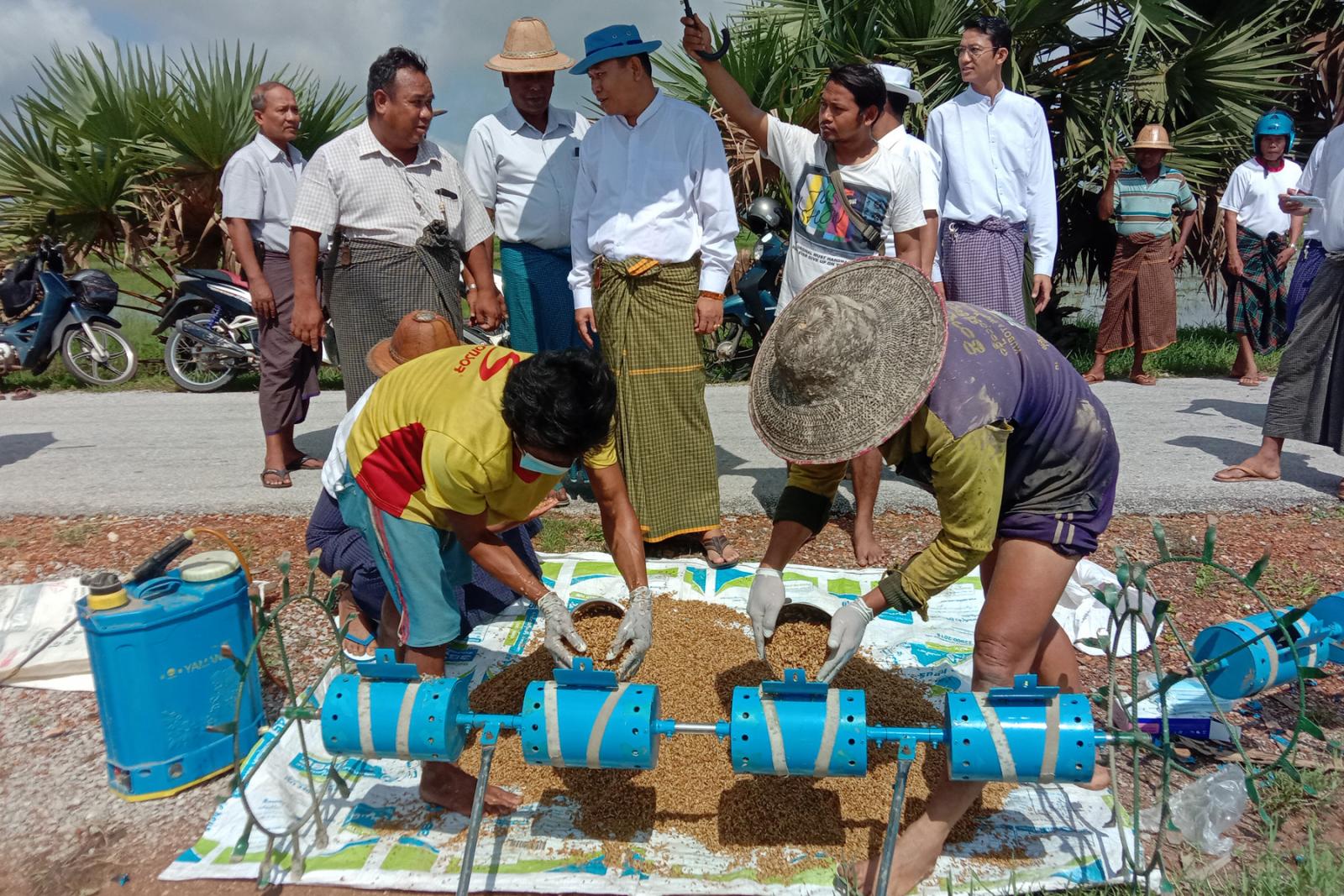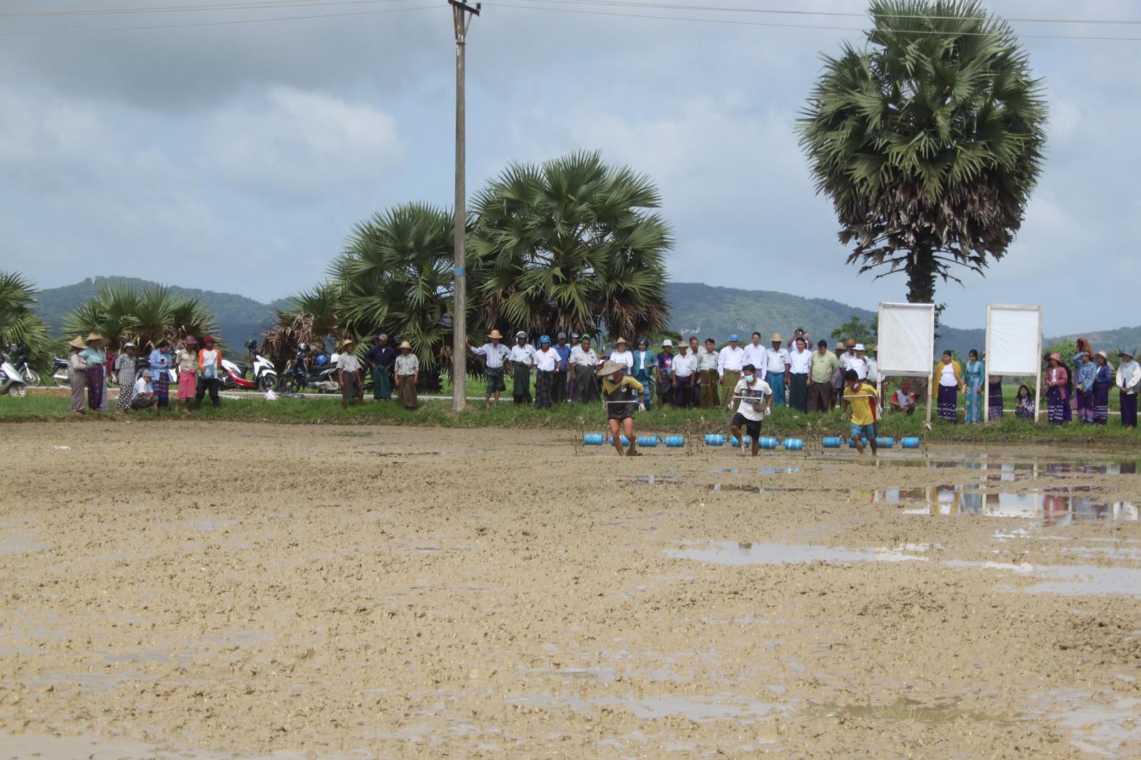 အဆိုပါ မိုးစပါးမျိုးစေ့ချကိရိယာ (seeder) ဖြင့် မျိုးစေ့ချခြင်း ကွင်းသရုပ်ပြစိုက်ပျိုးပွဲကို မော်လမြိုင်ခရိုင် စိုက်ပျိုးရေးဦးစီးဌာန ခရိုင်ဦးစီးမှူး ဦးသိန်းအောင်သန်းနှင့် ခရိုင်အဆင့် သက်ဆိုင်ရာဌာန တာဝန်ရှိသူများ၊ မြို့နယ်စီမံအုပ်ချုပ်ရေးအဖွဲ့ (ဥက္ကဋ္ဌ) နှင့်အဖွဲ့ဝင်များ၊ မြို့နယ်စိုက်ပျိုးရေးဦးစီးဌာန ဦးစီးမှူးနှင့်ဝန်ထမ်းများ၊ သက်ဆိုင်ရာဌာန တာဝန်ရှိသူများ၊ ရပ်ကျေးအုပ်ချုပ်ရေးမှူးများနှင့် တောင်သူများတက်ရောက်ခဲ့ကြောင်း သိရသည်။