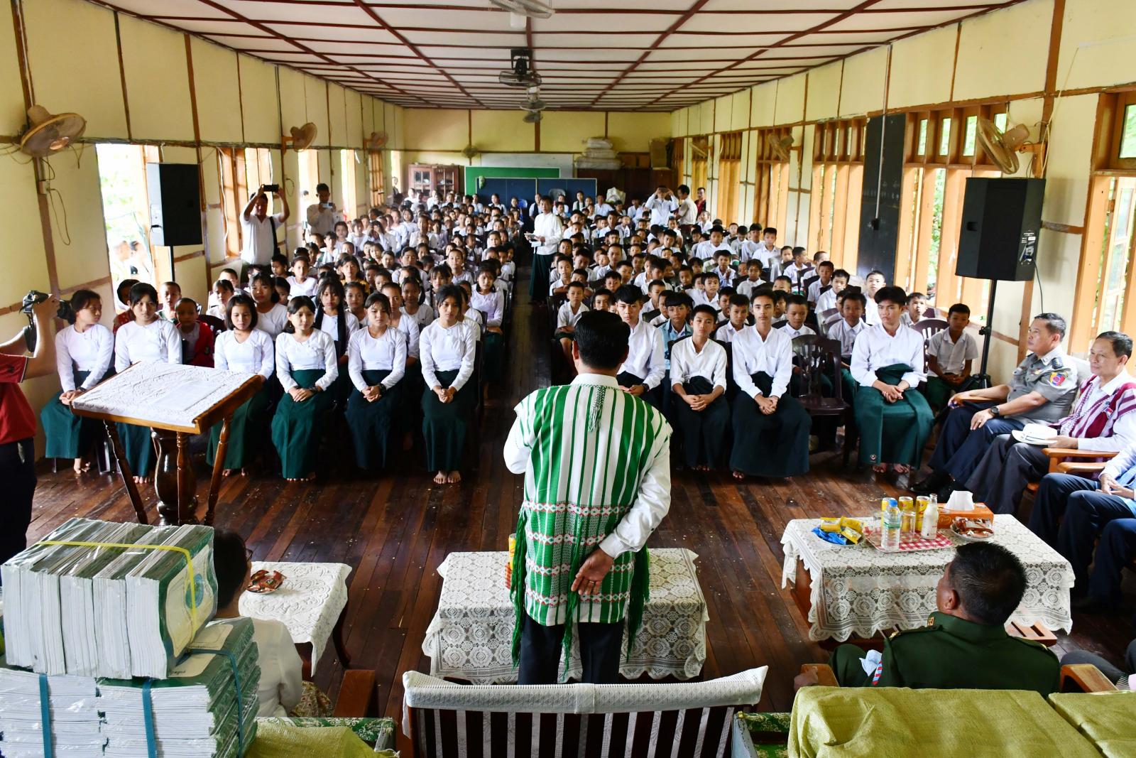 လူတိုင်းလက်လှမ်းမီသည့် ဘက်စုံပညာရေးစနစ်ကို အကောင်အထည်ဖော်ဆောင်လျက်ရှိရာတွင် ကျောင်းသား၊ ကျောင်းသူများ အေးချမ်းပျော်ရွှင်စွာ ပညာသင်ကြားနိုင်ရေးအတွက် ယမန်နေ့နံနက်ပိုင်းက မြိုင်ကြီးငူဒေသရှိ အခြေခံပညာကျောင်းဆောင်သစ်များ ဖွင့်လှစ်ခဲ့ပြီး မြိုင်ကြီးငူဒေသသို့ ယာယီပြောင်းရွေ့နေထိုင်ပညာသင်ကြားလျက်ရှိသော ဖာပွန်မြို့နယ်မှ ကျောင်းသား၊ ကျောင်းသူများအား ကျောင်းဝတ်စုံ၊ ဗလာစာအုပ်နှင့် ထောက်ပံငွေများပေးအပ်ခဲ့သည်။