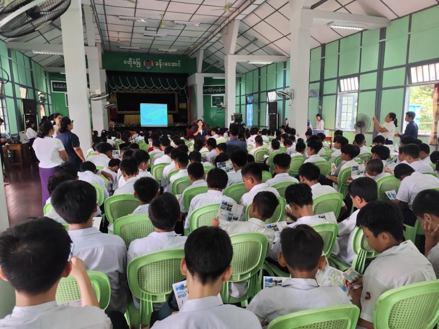 ဆက်လက်၍ အင်ဂျင်နီယာဌာနမှ(ရေနှင့်သန့်ရှင်းရေး)Logo ပါလက်ကမ်းစာအုပ်၊ စာရေးကိရိယာများကို ကျောင်းသား၊ သူများအား ဖြန့်ဝေပေးခဲ့ပြီး မေးခွန်းမေးဖြေများမေးမြန်းခြင်းဖြေကြားခြင်းတို့ ဆောင်ရွက်ခဲ့ကြောင်းနှင့် အဆိုပါအသိပညာပေးဟောပြောပွဲသို့ဌာနဆိုင်ရာတာဝန်ရှိသူများ၊ သက်ဆိုင်ရာဌာနမှ တာဝန်ရှိသူများနှင့် ကျောင်းသား၊ ကျောင်းသူများ စုစုပေါင်း(၁၈၀)ဦး တက်ရောက်ခဲ့ကြောင်း သိရသည်။
