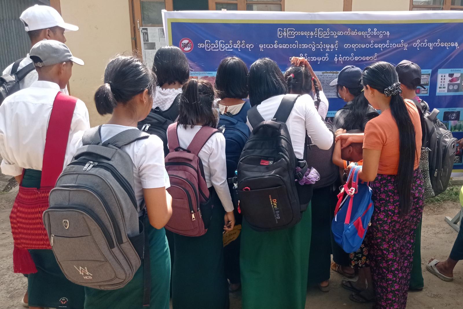 ထို့နောက် ကျောင်းသား၊ ကျောင်းသူများက ပြန်ကြားရေးနှင့်ပြည်သူ့ဆက်ဆံရေးဦးစီးဌာနက ပြသထားသော သုတ/ရသ စာအုပ်၊ စာစောင်များနှင့် မူးယစ်ဆေးဝါးအန္တရာယ် တားဆီးကာကွယ်ရေး အသိပညာပေးနံရံကပ်စာစောင်များအား စိတ်ဝင်တစား လေ့လာကြည့်ရှုခဲ့ကြကြောင်း သိရသည်။
