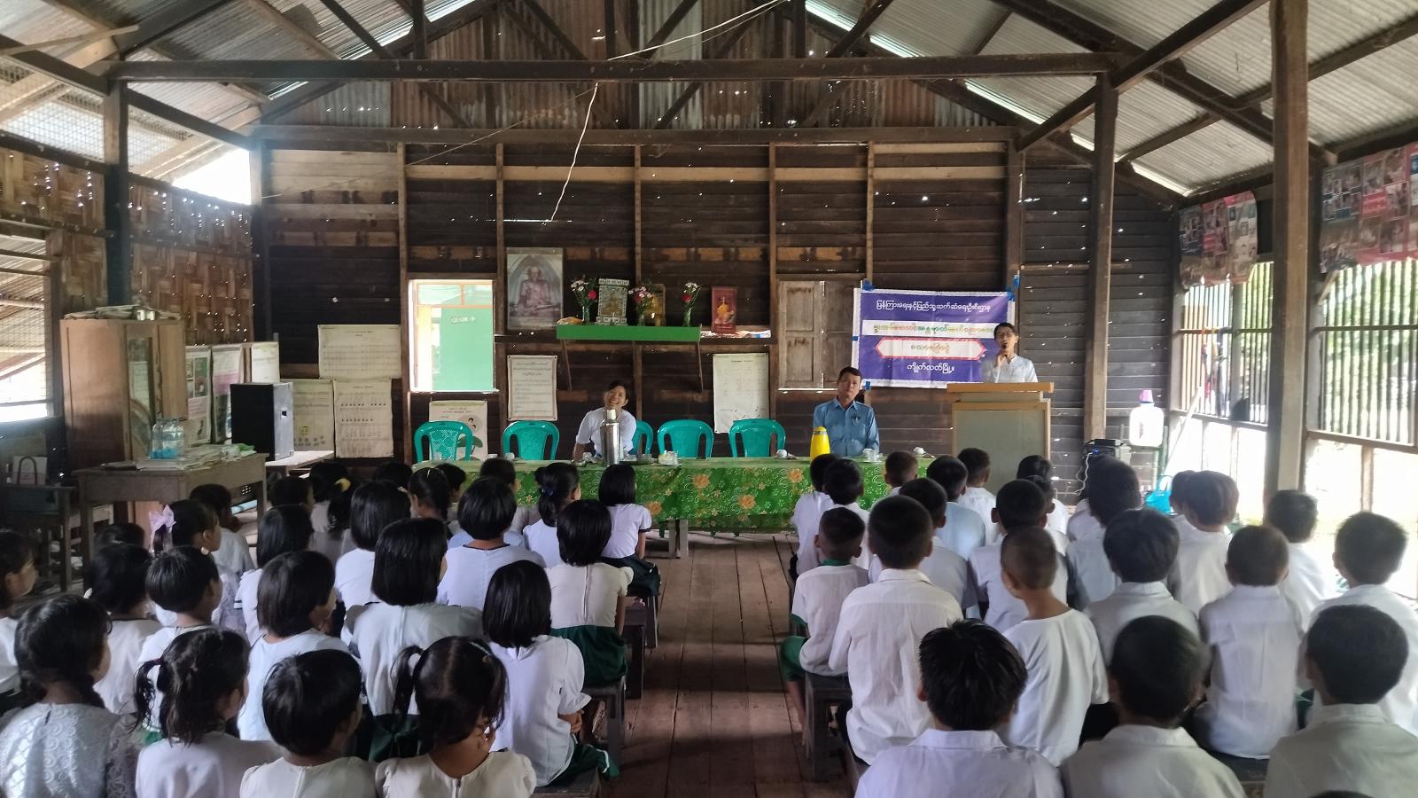ရှေးဦးစွာ ပြန်ကြားရေးနှင့်ပြည်သူ့ဆက်ဆံရေးဦးစီးဌာနမှ ဦးစီးအရာရှိ ဒေါ်ရီရီမြင့်က စာဖတ်ခြင်း၏အကျိုးကျေးဇူး၊ မူးယစ်ဆေးဝါးသုံးစွဲမှု၏ ဆိုးကျိုးများနှင့် လူကုန်ကူးမှုအကြောင်းသိကောင်းစရာများ၊ စားသုံးသူရေးရာဦးစီးဌာနမှ မြို့နယ်ဦးစီးမှူး ဦးမိုးမင်းသန်းက စားသောက်ကုန်များနှင့်ပတ်သက်၍ ဆိုးဆေးများ၊ တာရှည်ခံဆေးများ၏ ဆိုးကျိုးများ၊ သက်တမ်းလွန်စားသောက်ကုန်များ၏ အန္တရာယ်များအကြောင်းတို့ကို အသိပညာပေးဟောပြောခဲ့ကြသည်။ ထို့နောက် “လူကုန်ကူးမှုအကြောင်း၊ မူးယစ်ဆေးဝါးအန္တရာယ်အကြောင်းနှင့် ကလေးအလုပ်သမားပပျောက်ရေးအကြောင်းသိကောင်းစရာ” အသိပညာပေး နံရံကပ်စာစောင်များကိုပြသပေးခဲ့ရာ ကျောင်းသား၊ ကျောင်းသူများက စိတ်ပါဝင်စားစွာ ကြည့်ရှုခဲ့ကြပြီး “အပြည်ပြည်ဆိုင်ရာမူးယစ်ဆေးဝါးအလွဲသုံးမှုနှင့် တရားမဝင်ရောင်းဝယ်မှုတိုက်ဖျက်ရေးနေ့အထိမ်းအမှတ်”အဖြစ် ပြန်ကြားရေးနှင့်ပြည်သူ့ဆက်ဆံရေးဦးစီးဌာန(ရုံးချုပ်)က ထုတ်ဝေသည့် “သတင်းစကား” လက်ကမ်းစာစောင်များကိုလည်း အခမဲ့ ဖြန့်ဝေပေးခဲ့သည်။