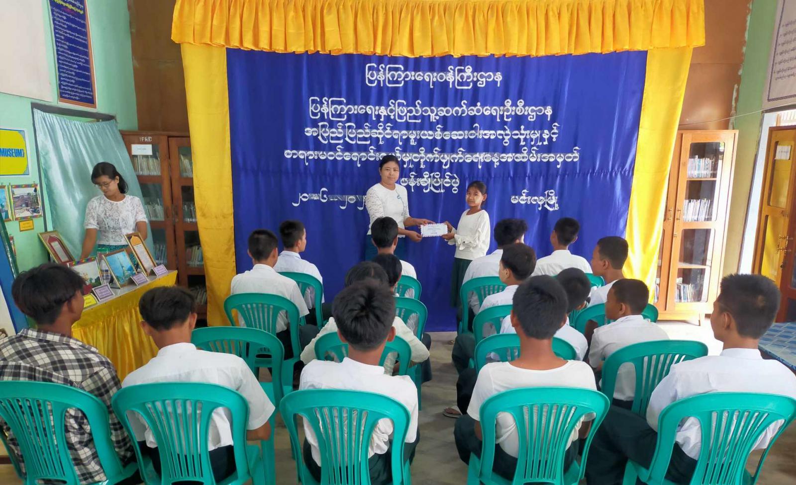 ထို့နောက် အလယ်တန်းအဆင့်ပန်းချီပြိုင်ပွဲ ကျင်းပပြုလုပ်ခဲ့ရာ မြောက်ရပ်အခြေခံပညာအလယ်တန်းကျောင်းမှ ကျောင်းသား၊ ကျောင်းသူ (၁၇)ဦးမှ “မူးယစ်အန္တရာယ် တို့ကာကွယ်”ခေါင်းစဉ်ဖြင့် ဝင်ရောက်ယှဉ် ပြိုင်ခဲ့ကြရာ ဆုရရှိသည့် ကျောင်းသား၊ ကျောင်းသူများကို တာဝန်ရှိသူများက ဆုများပေးအပ်ချီးမြှင့်ခဲ့ကြောင်း သိရသည်။