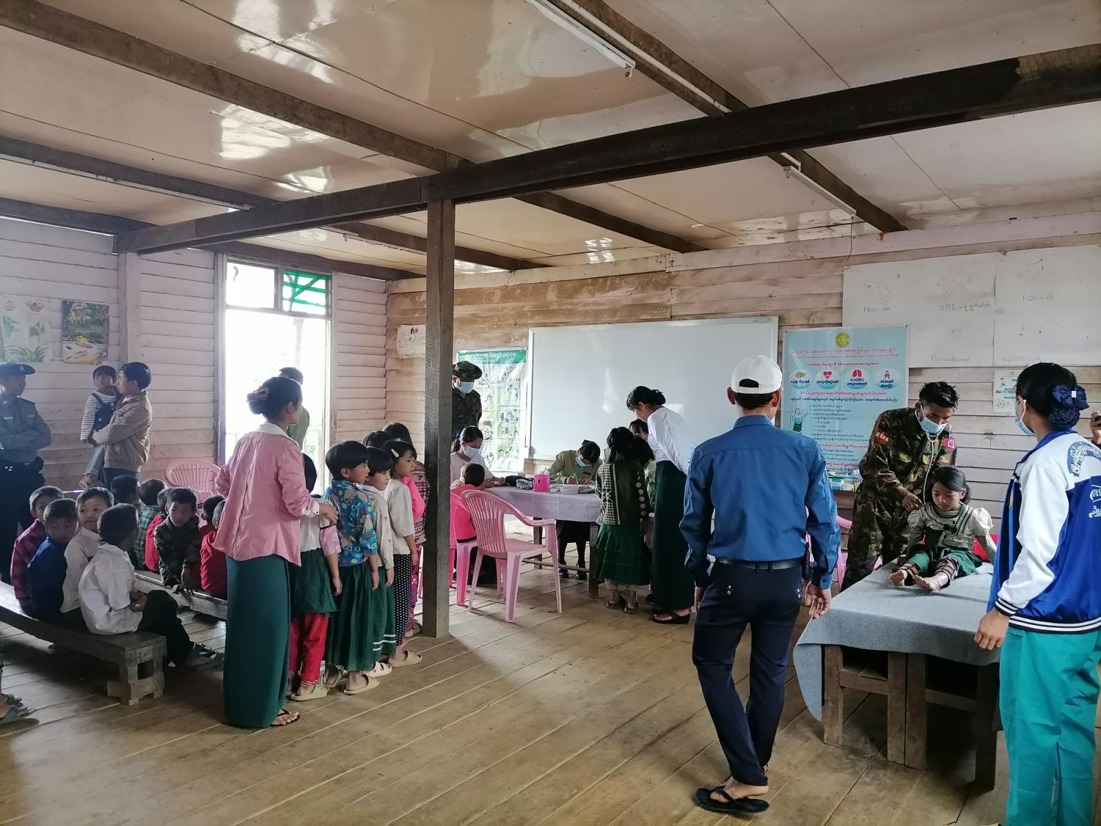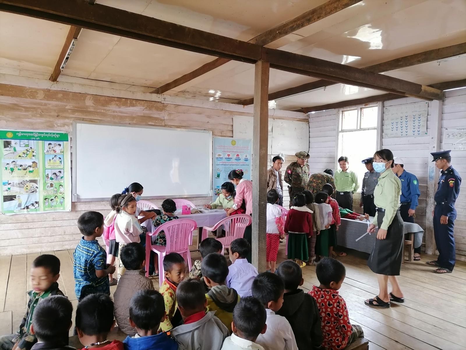 ထိုသို့ ဆောင်ရွက်ရာတွင် ကျောင်းသား၊ ကျောင်းသူ (၄၈၈)ဦးတို့အား အမှတ်( ၅၂) တပ်ရင်းမှ ဒုအရာခံဗိုလ်( ဆေးလက်ထောက်) နှင့် ပြည်သူ့ကျန်းမာရေးဌာနမှ အရန်သူနာပြုအဖွဲ့ဝင်များက ကျန်းမာရေးစစ်ဆေးစောင့်ရှောက်ပေးခဲ့ပြီး အထွေထွေအုပ်ချုပ်ရေးဦးစီးဌာနမှ ဝန်ထမ်းများနှင့် ပြန်/ဆက်ဦးစီးဌာနမှ ဝန်ထမ်းများက အားဖြည့်ကူညီဆောင်ရွက်ပေးလျက်ရှိကြောင်း သိရသည်။