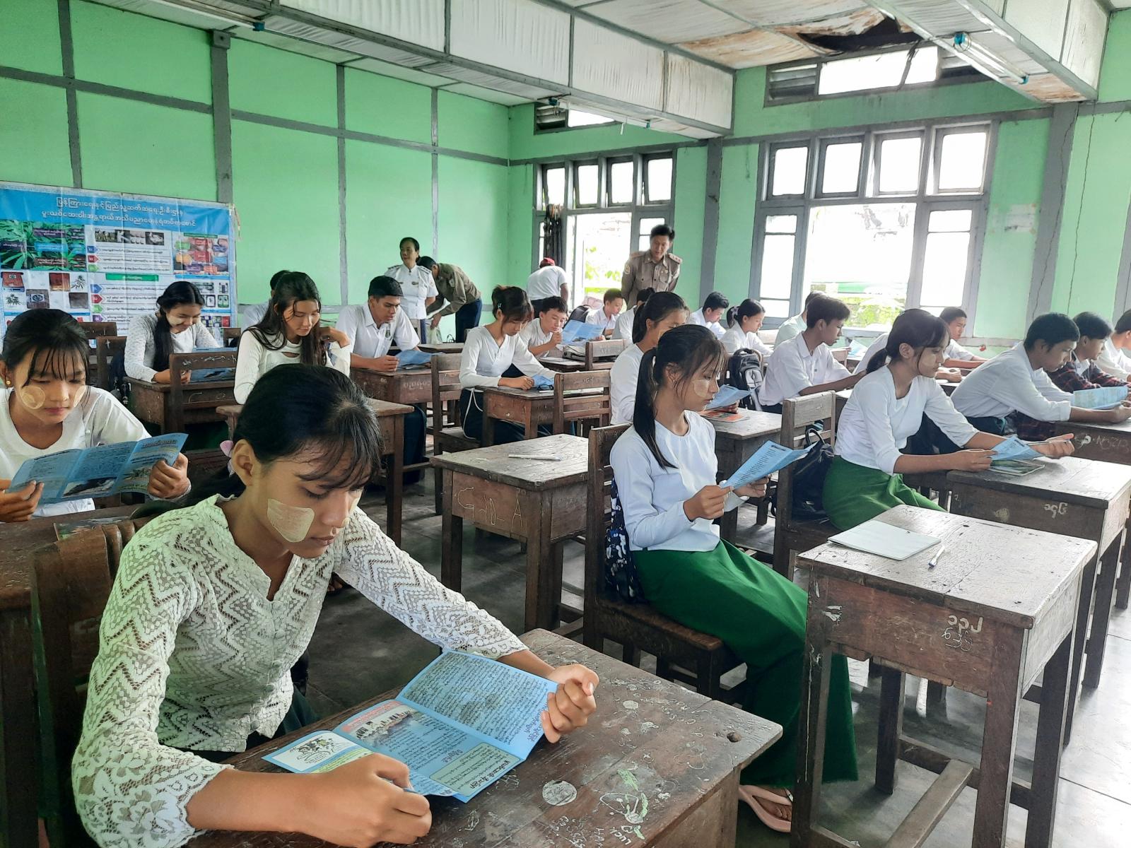 ထို့နောက် ကျောင်းသား၊ ကျောင်းသူများအား မူးယစ်ဆေးဝါးအန္တရာယ် အသိပညာပေး သတင်းစကား လက်ကမ်းစာစောင်ဖြန့်ဝေခြင်း၊ အသိပညာပေး နံရံကပ်စာစောင်များနှင့် သုတ/ ရသ စာအုပ်စာစောင်များကို ခင်းကျင်းပြသခြင်းများ ဆောင်ရွက်ရာ ကျောင်းသား၊ ကျောင်းသူများက စိတ်ပါဝင်စားစွာ လေ့လာကြည့်ရှုကြကြောင်း သိရသည်။