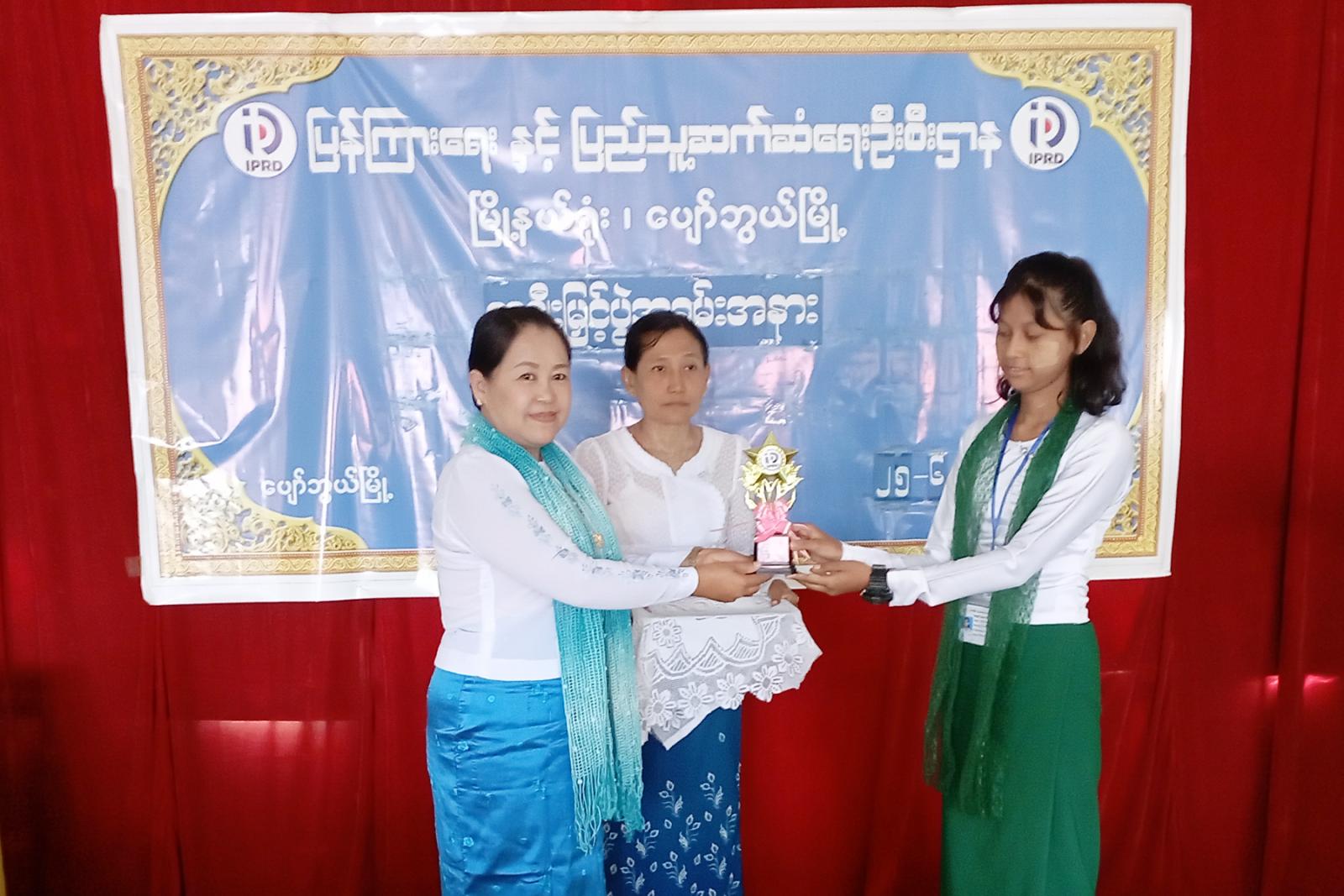 ဆက်လက်၍ အထက်တန်းအဆင့်၊ အလယ်တန်းအဆင့် ပန်းချီပြိုင်ပွဲတို့တွင် ဆုရရှိသော ကျောင်းသား၊ ကျောင်းသူများအား ရမည်းသင်းခရိုင် လက်ထောက်ညွှန်ကြားရေးမှူး ဒေါ်သိမ့်သိမ့်မျိုး၊ မြို့နယ်မိခင်နှင့်ကလေး စောင့်ရှောက်ရေးအသင်းဥက္ကဋ္ဌ ဒေါ်မြကြေးမုံနှင့် တာဝန်ရှိသူများက ဆုများပေးအပ်ချီးမြှင့်ပြီး ဆုရရှိသည့် ကျောင်းသား၊ ကျောင်းသူများက ၎င်းတို့ရေးဆွဲထားသည့် ပန်းချီအကြောင်းအရာနှင့် ရည်ရွယ်ချက်များကို ပြန်လည်ရှင်းလင်းတင်ပြကြသည်။