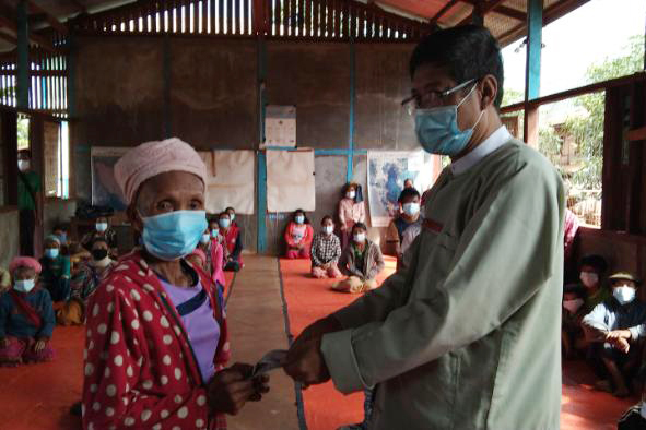 ကယားပြည်နယ် လွိုင်ကော်ခရိုင် ဒီးမော့ဆိုမြို့နယ်တွင် ကိုဗစ်-၁၉ ရောဂါ ကာကွယ်ထိန်းချုပ်ရေး ကာလအတွင်း ပုံမှန်ဝင်ငွေမရှိသော အခြေခံလူတန်းစားများ တစ်ဖက်တစ်လမ်းမှ အထောက်အကူ ဖြစ်စေရေးအတွက် နိုင်ငံတော်မှ အိမ်ထောင်စုတစ်စုလျှင် ငွေကျပ် ၂၀၀၀၀ နှုန်းဖြင့် စတုတ္ထအကြိမ် ထောက်ပံ့ငွေများ ပေးအပ်လျက်ရှိရာ ယမန်နေ့ နံနက်ပိုင်းက ဒေါတမကြီးကျေးရွာအုပ်စုအတွင်းရှိ ကျေးရွာများအား ထောက်ပံ့ငွေများ သွားရောက်ပေးအပ်ခဲ့ကြောင်း သိရသည်။